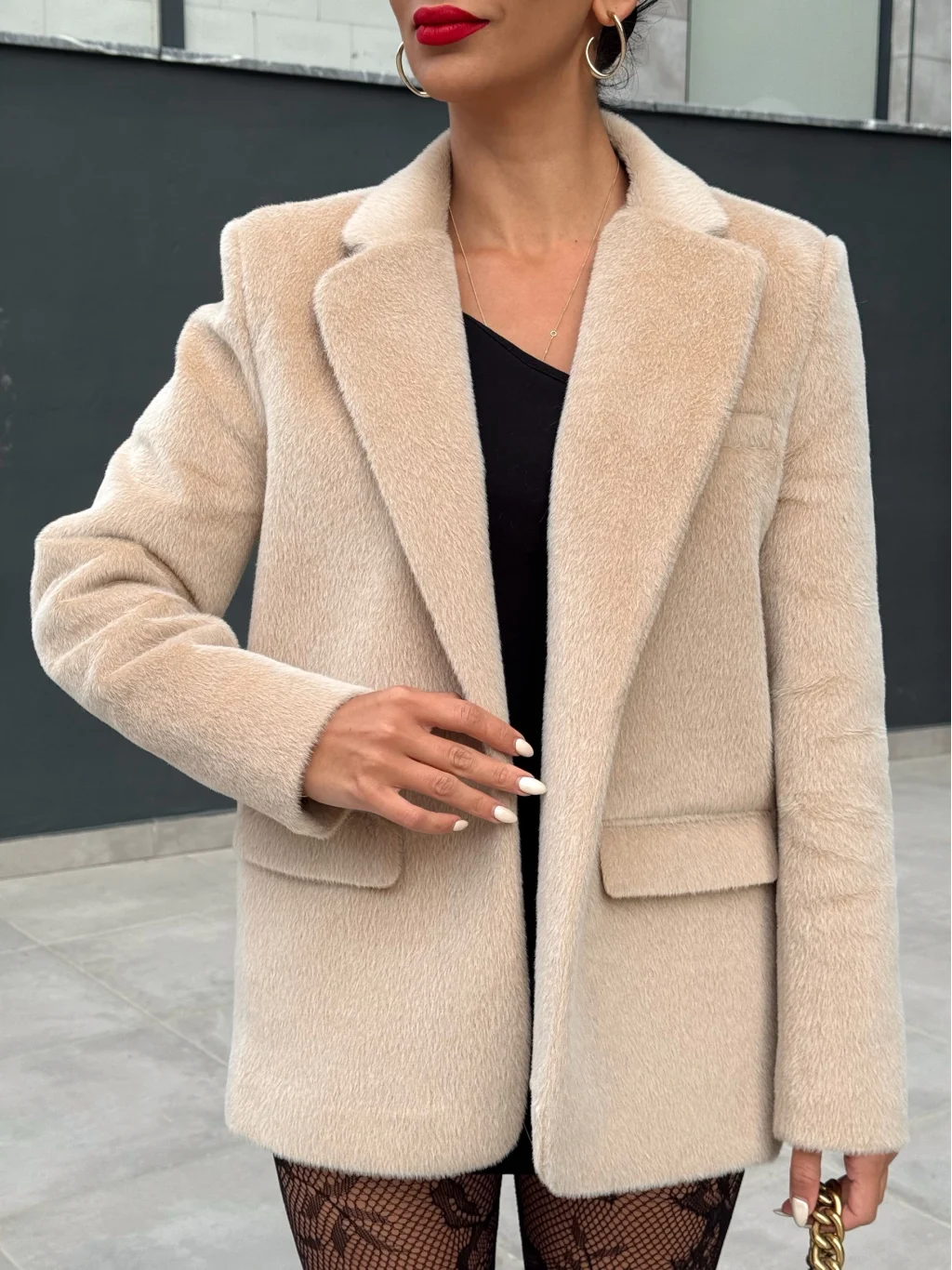 Alpaka Kemerli Ceket Ekru