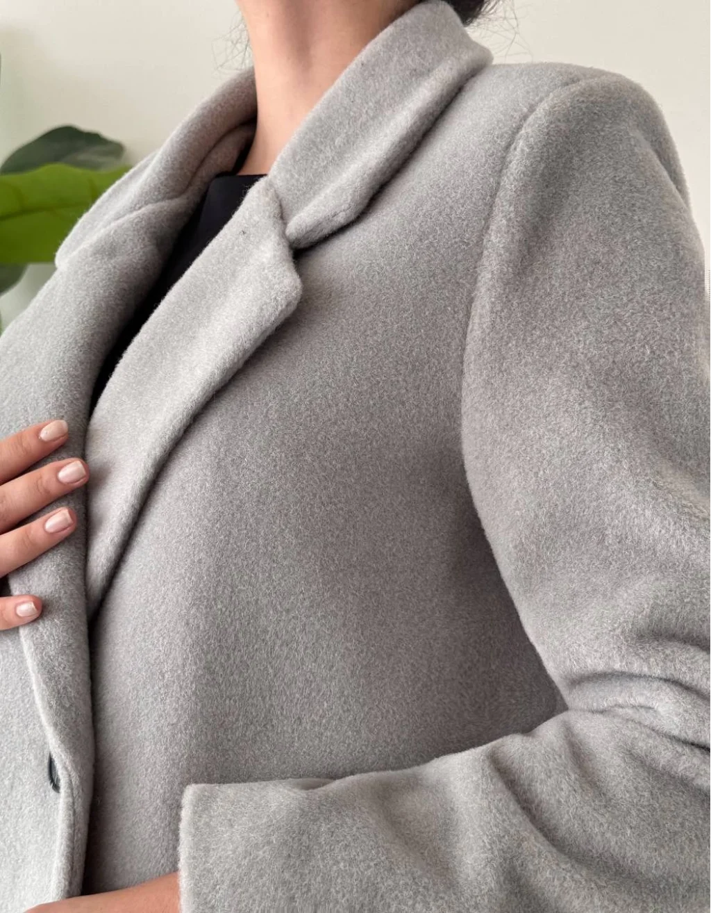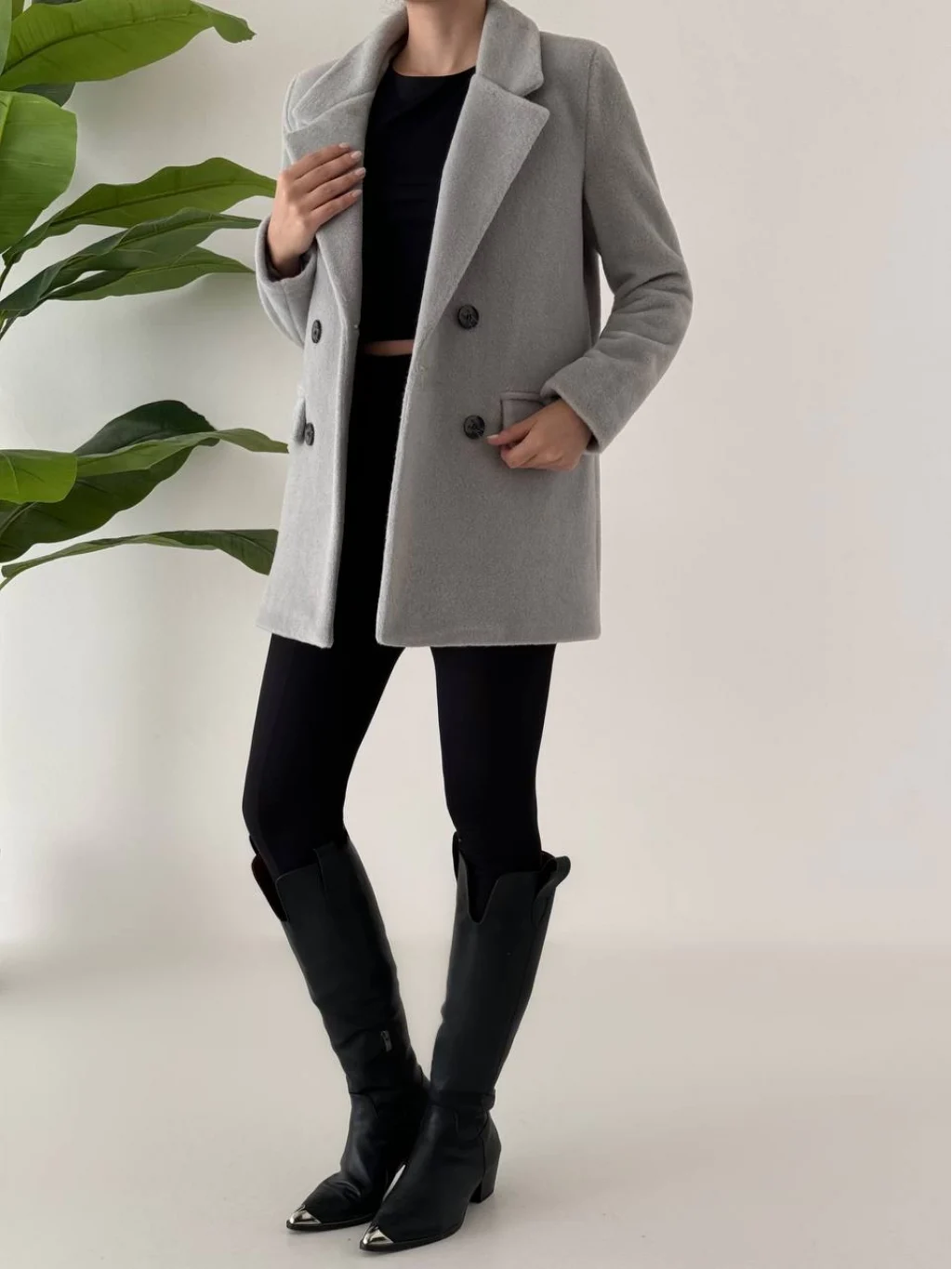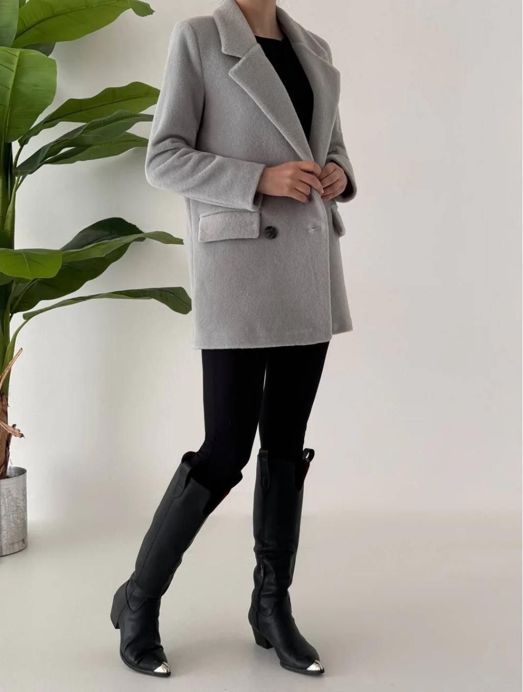İÇ ASTARLI DÜĞME KAPAMALI ANGORA DOKULU GRİ KISA KABAN