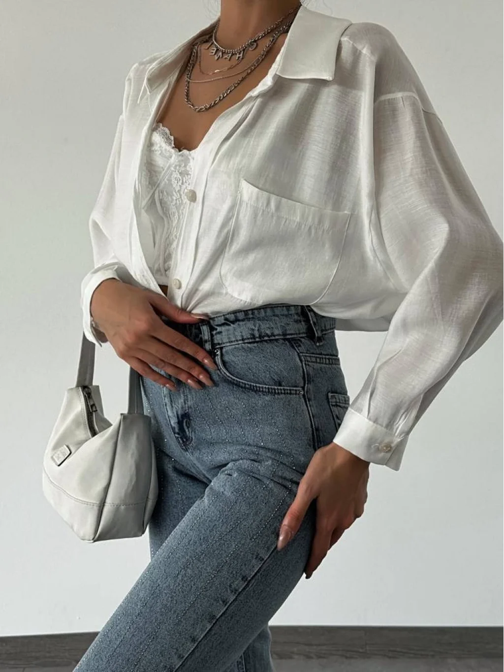 ARKASI PİLELİ SALAŞ BEYAZ GÖMLEK