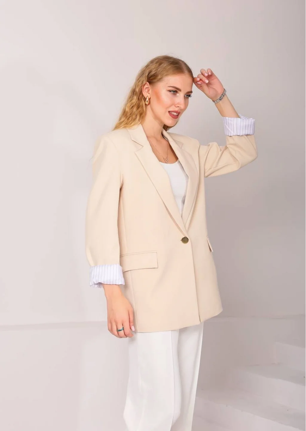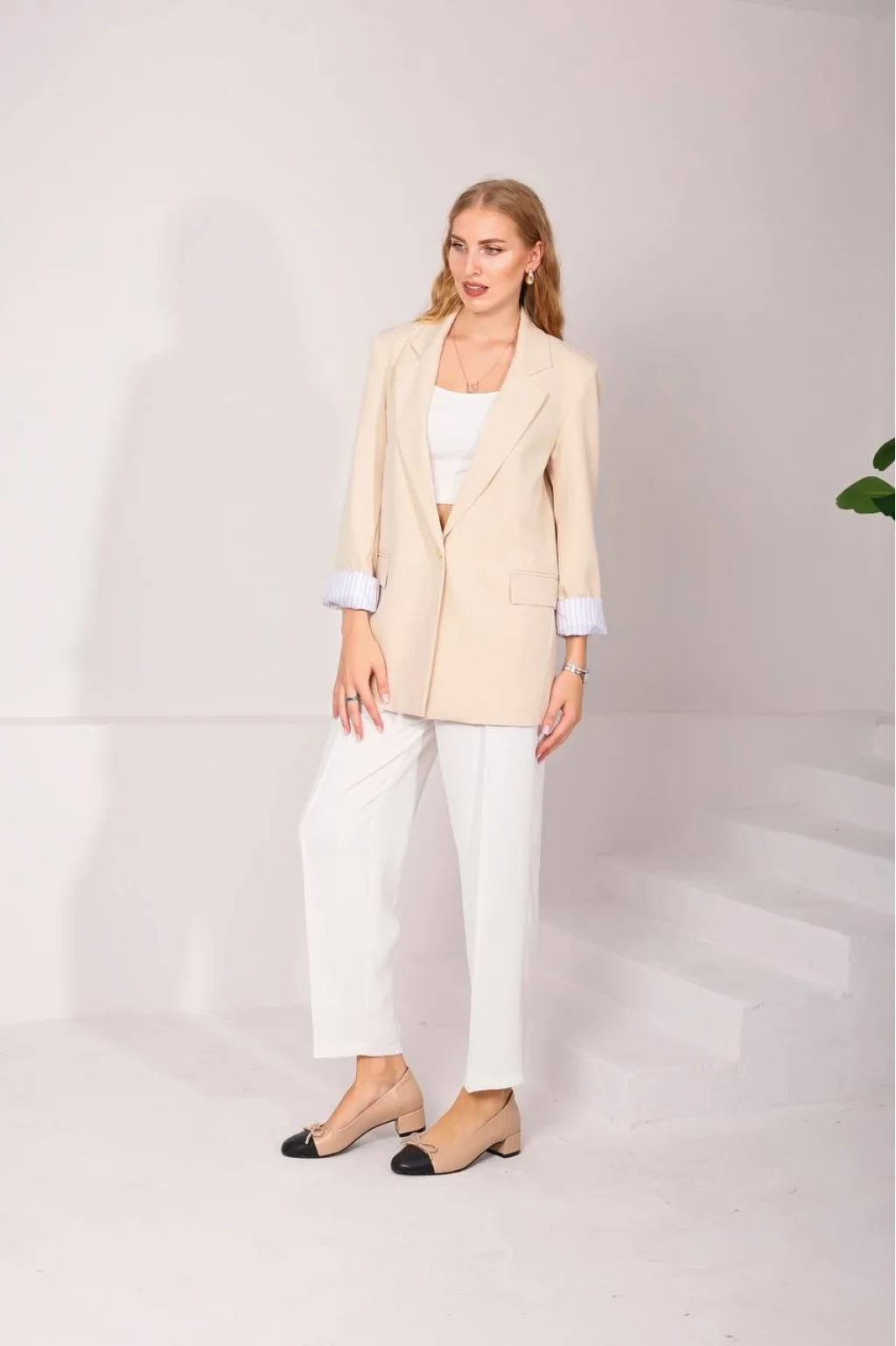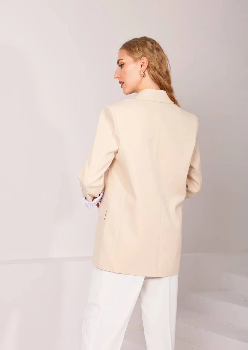 MYRA Astarı Garnili Taş Renk Blazer Ceket, şıklığı ve zarafeti bir arada sunar.