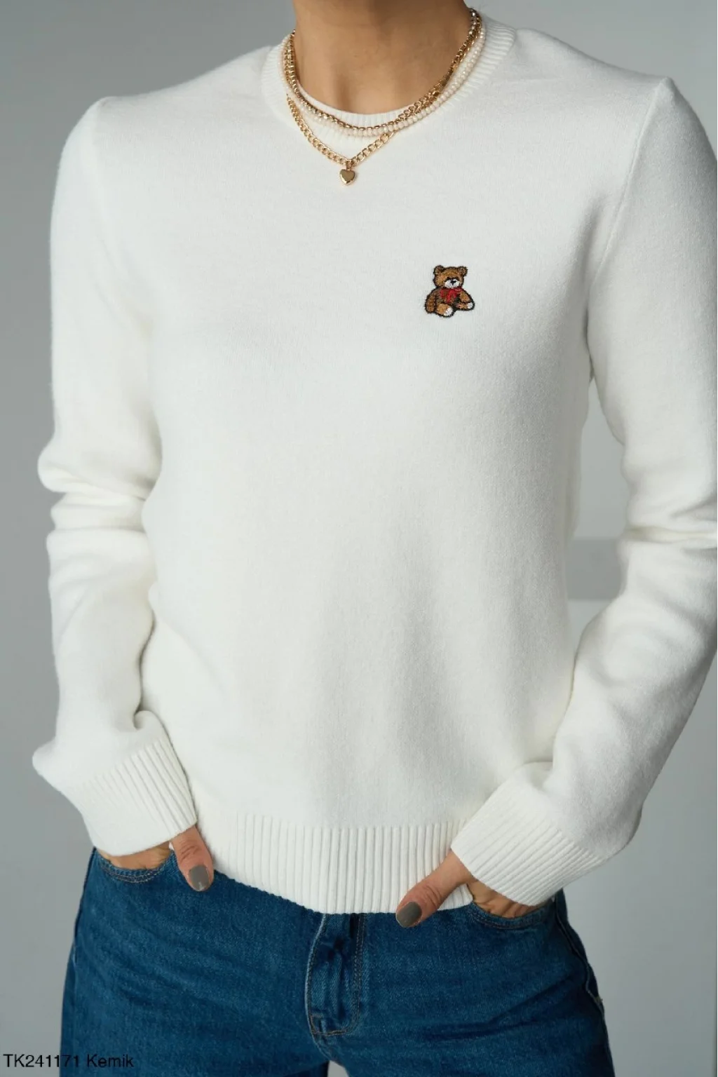 Ayı Armalı Triko Kazak Kemik