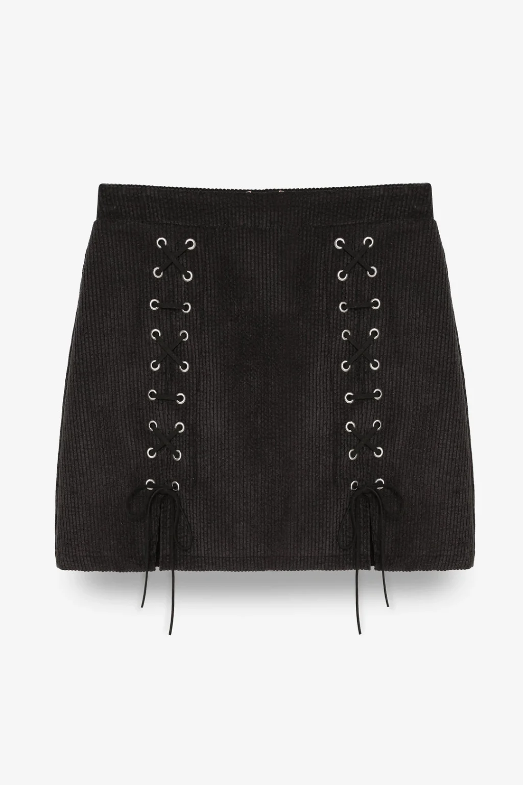 • MYRA Bağcıklı Kadife Fitilli Mini Etek Siyah, şıklığı ve zarafeti bir arada sunuyor.