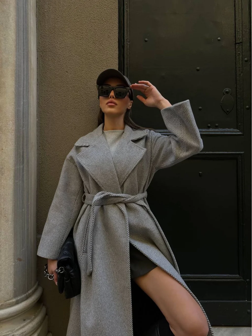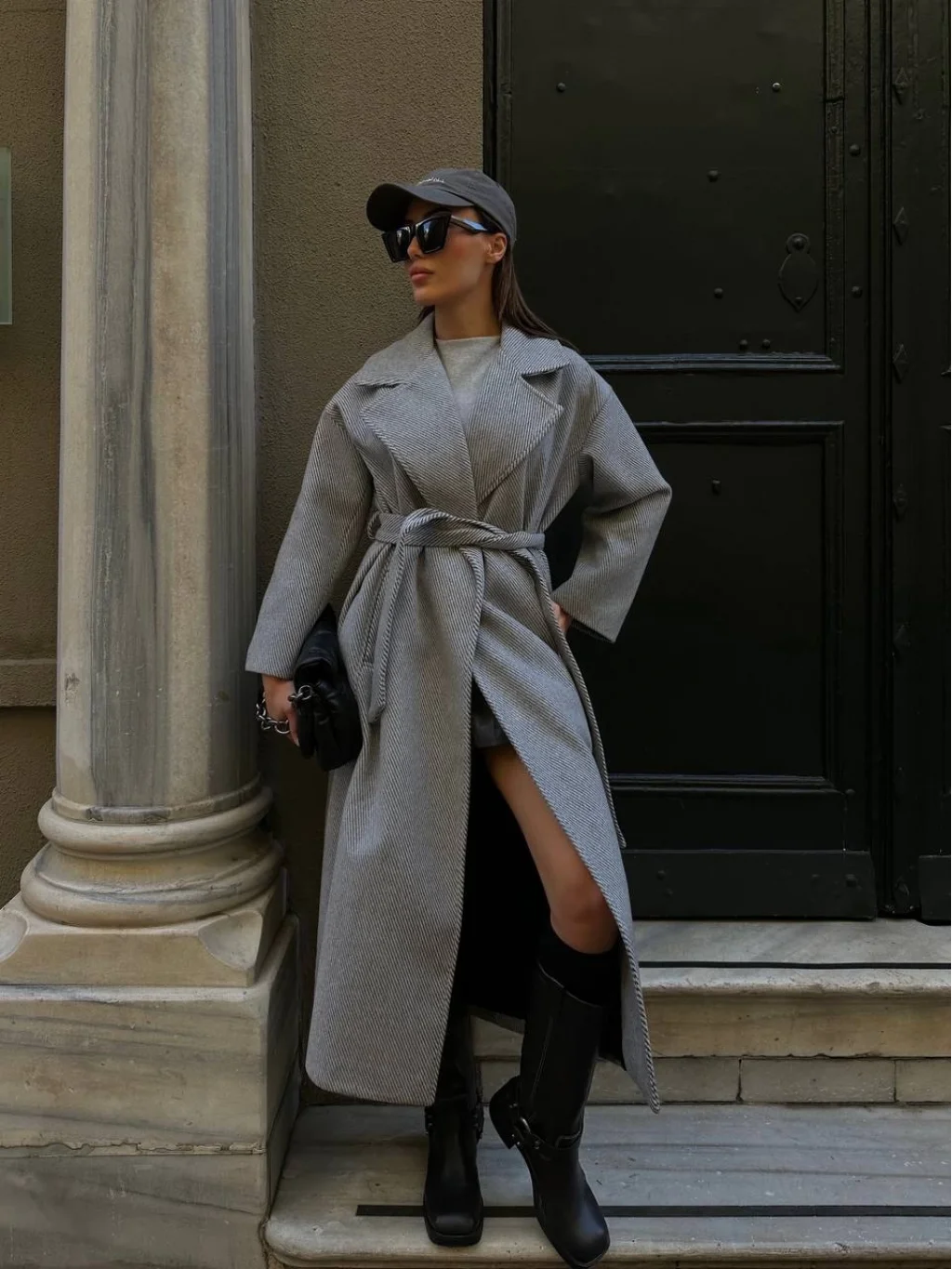 BAGLAMALI YÜN KABAN GRİ