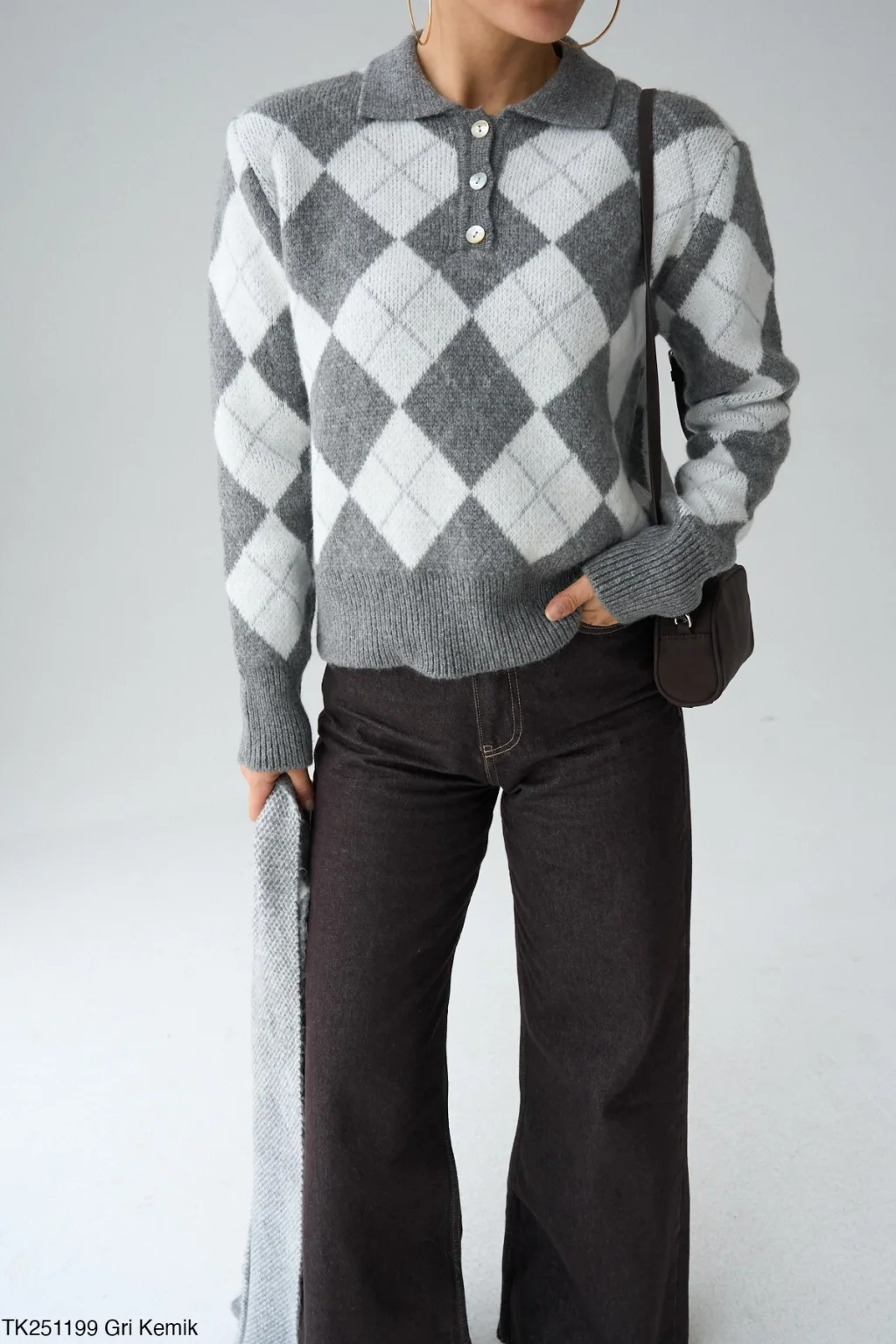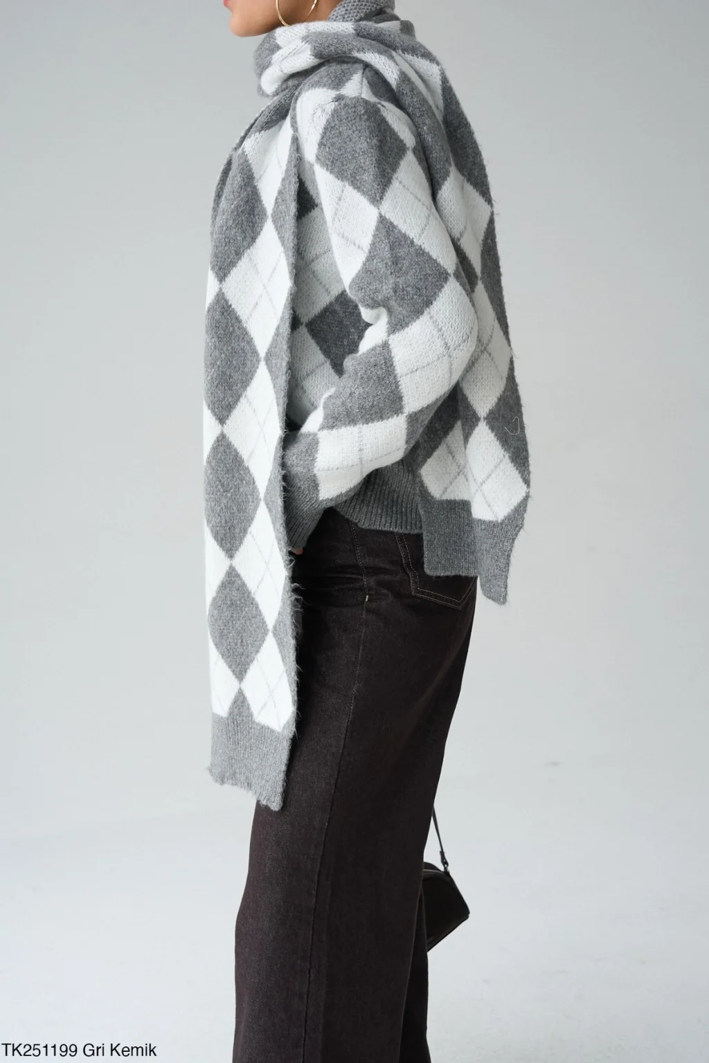 MYRA Baklava Desen Atkılı Gri Kazak, şıklığı ve sıcaklığı bir araya getiriyor.
