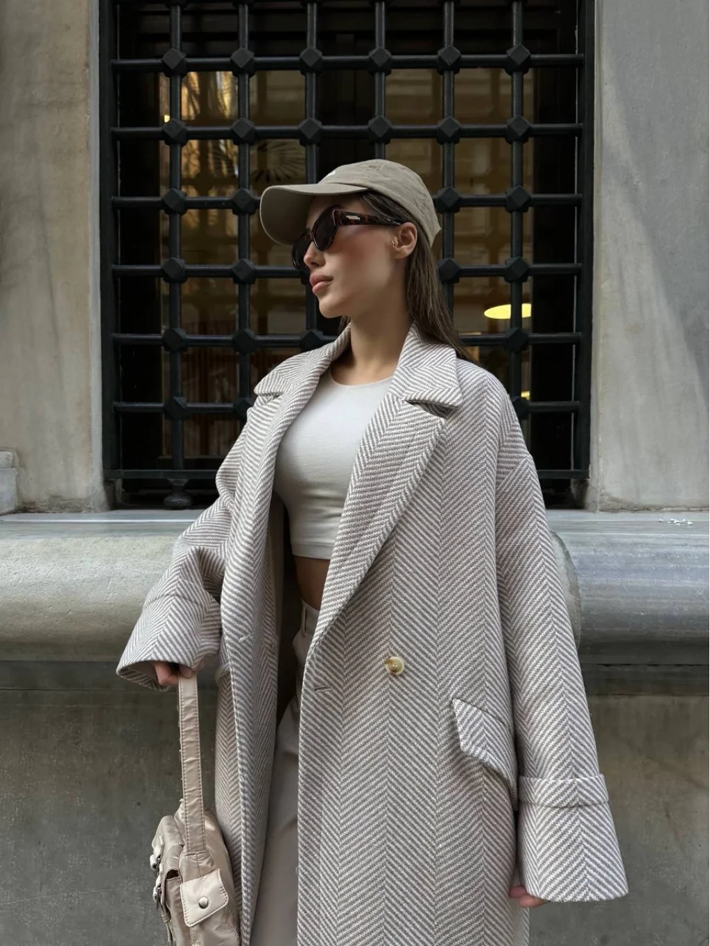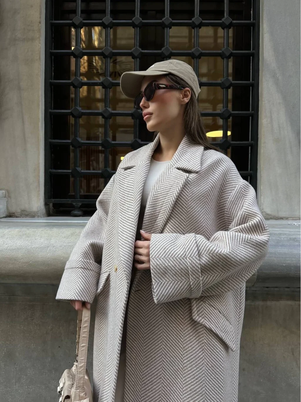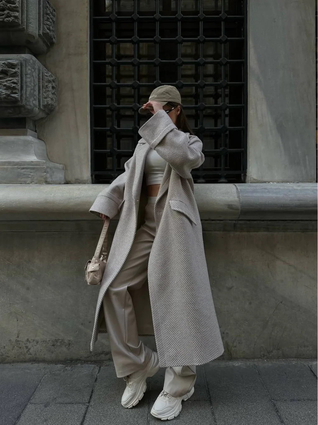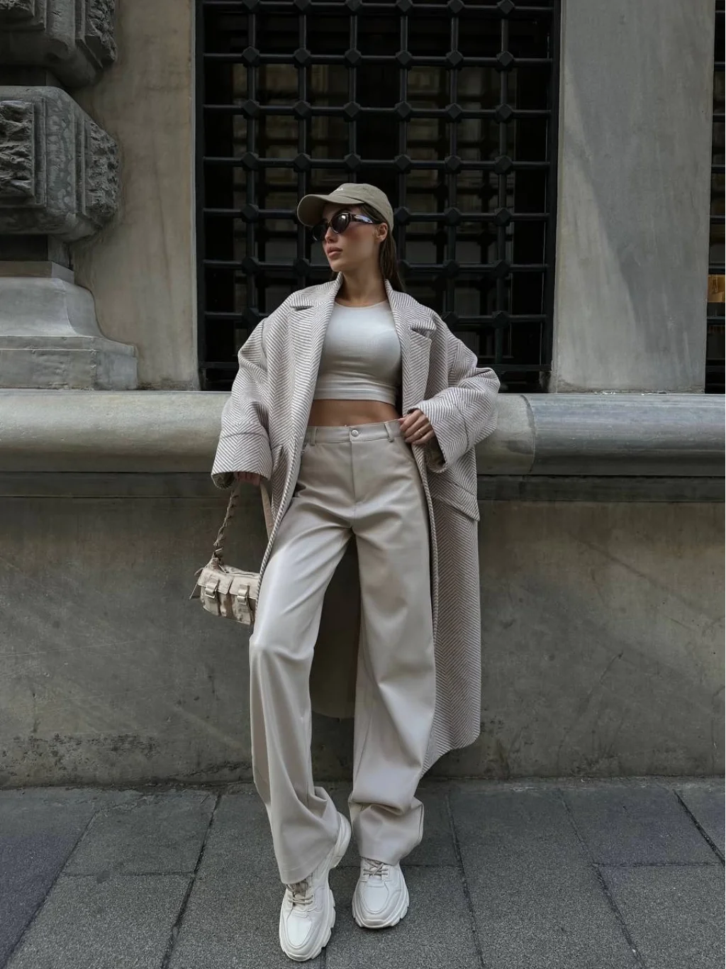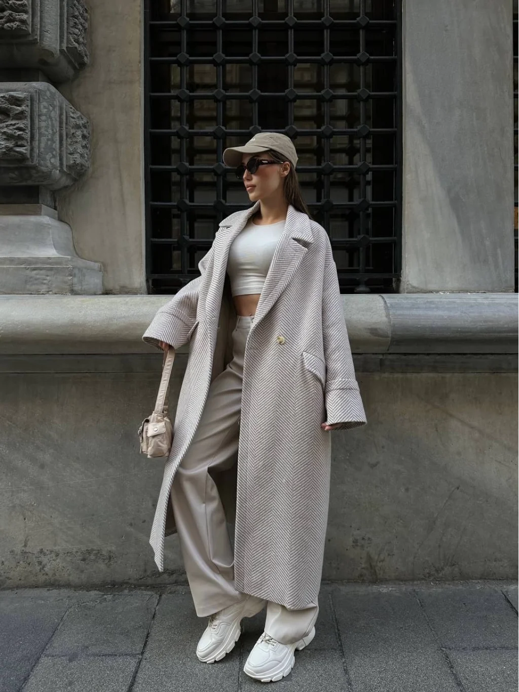 Premium kalitede olan kabanımızın içeriği %78 Yün %22 Pamukdur. Uzunluk olarak omuzdan bitiş kısmı Yaklaşık  122 cmdir. Kalıp olarak oversize kalıptır. Tek Düğmeli ve bağlamasız bir modeldir.