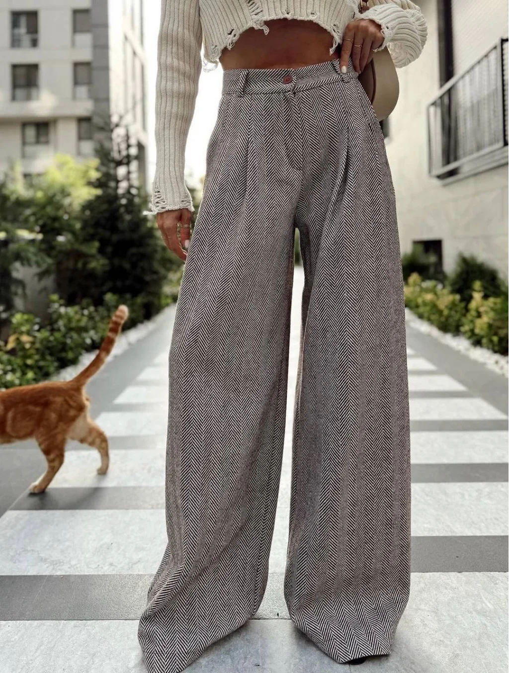 Balıksırtı Pamuklu Palazzo Pantolon Kahve