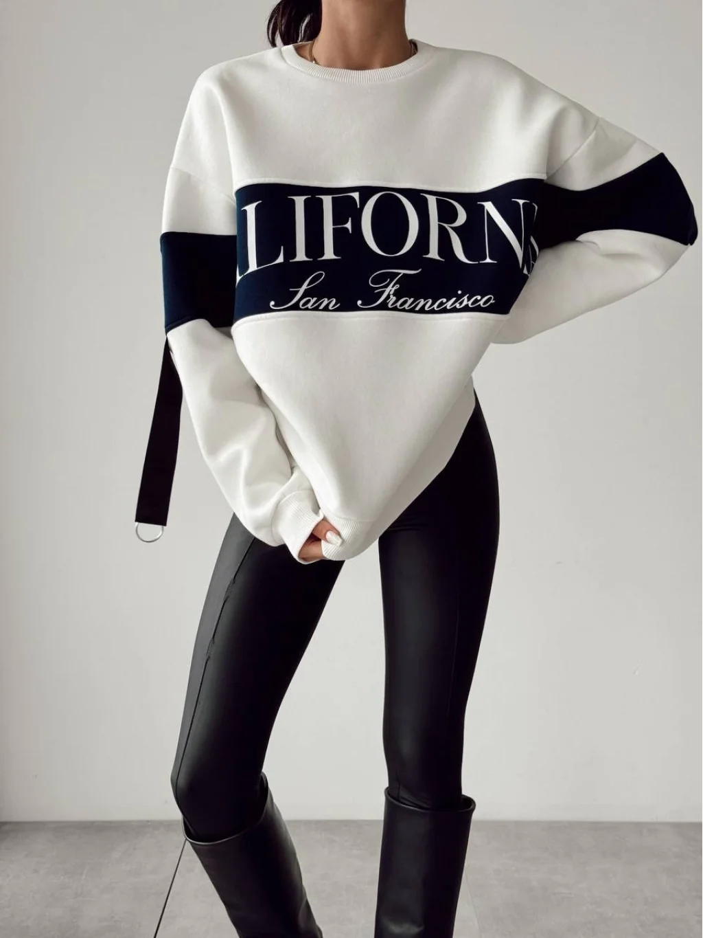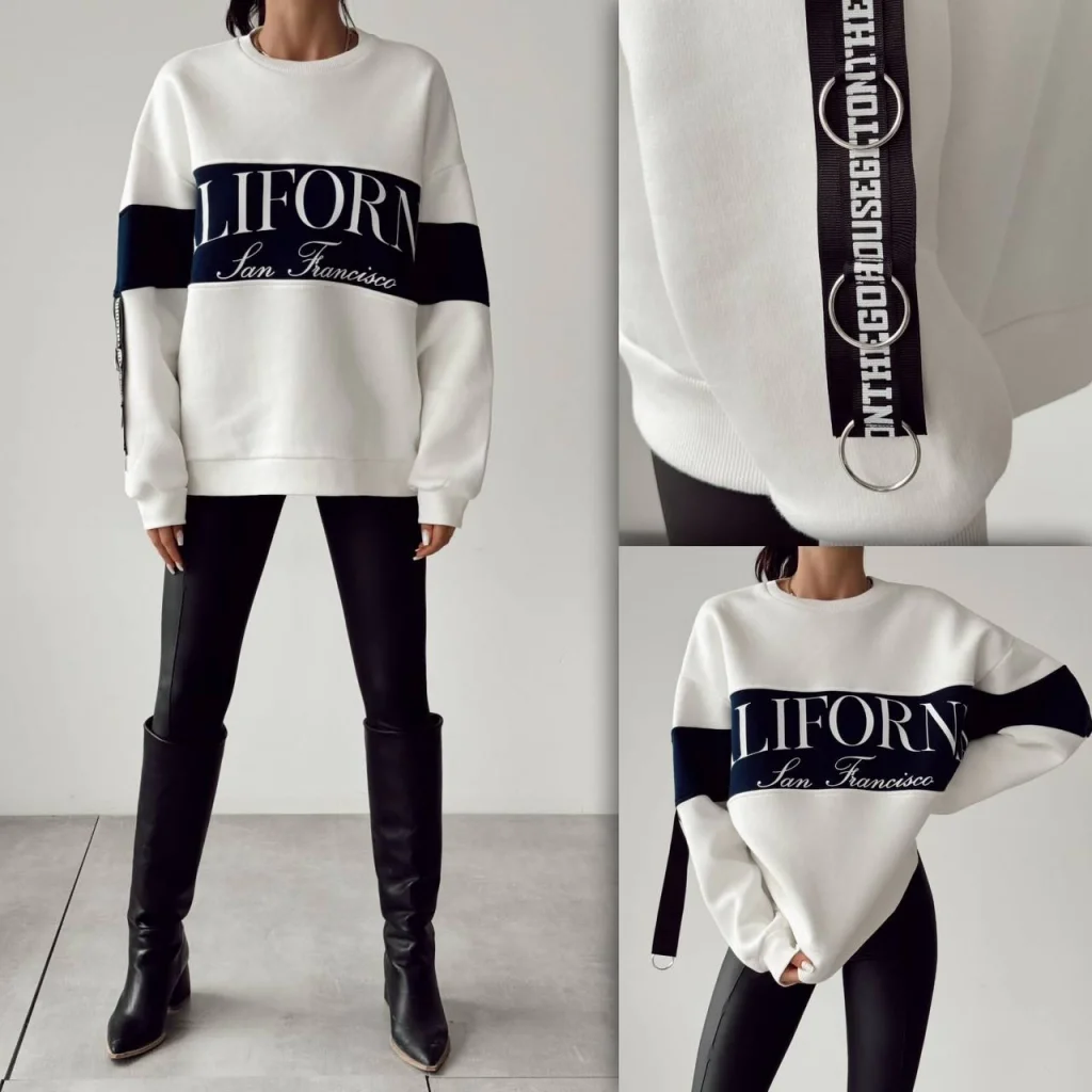 BASKI DETAYLI BEYAZ PAMUKLU SWEATSHİRT