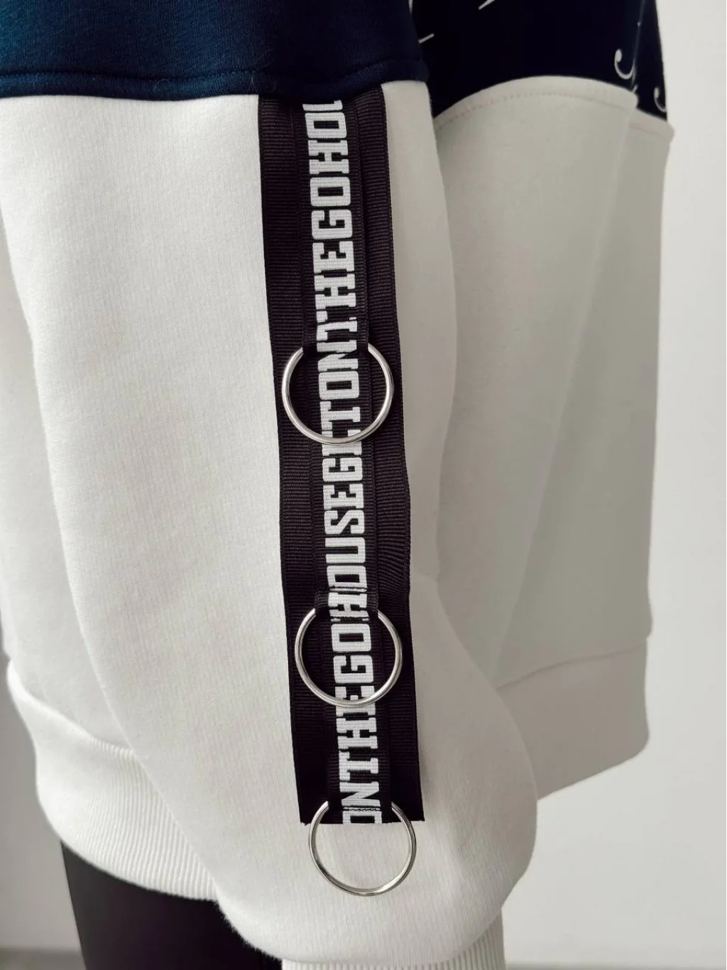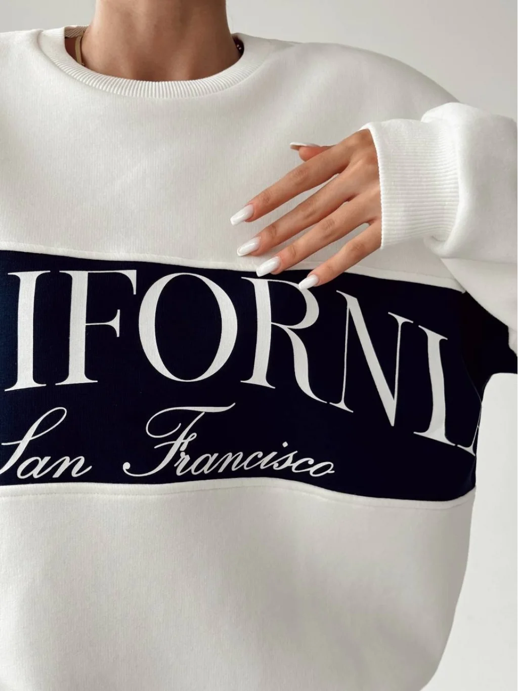 QUZU BASKI DETAYLI BEYAZ, LACİVERT BASKILI PAMUKLU SWEATSHİRT