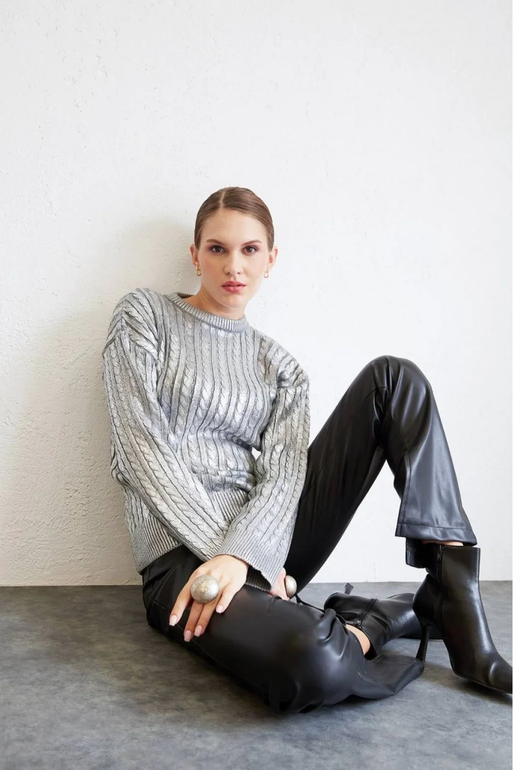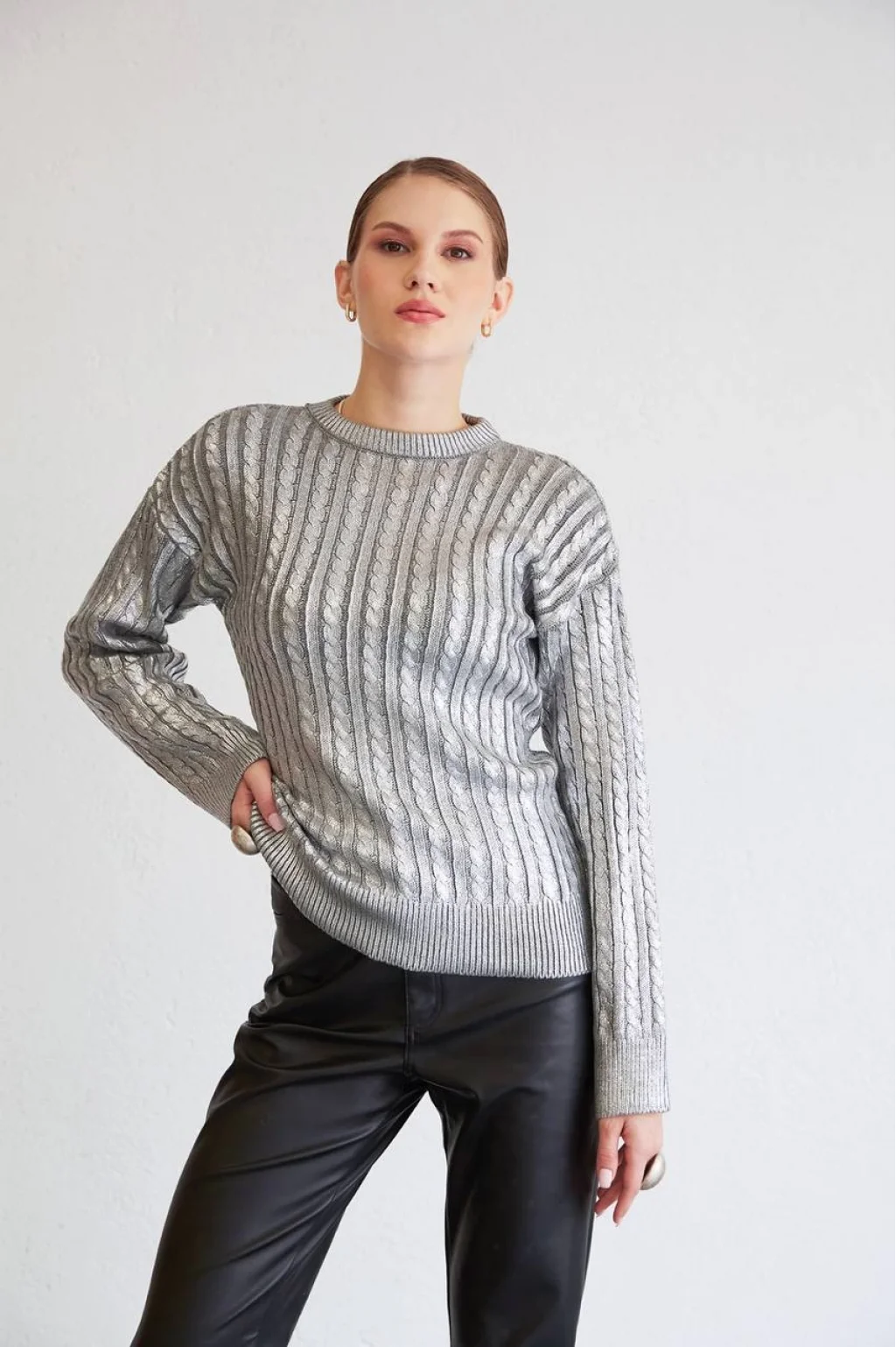 BASKILI DOKULU TRİKO KAZAK GRİ