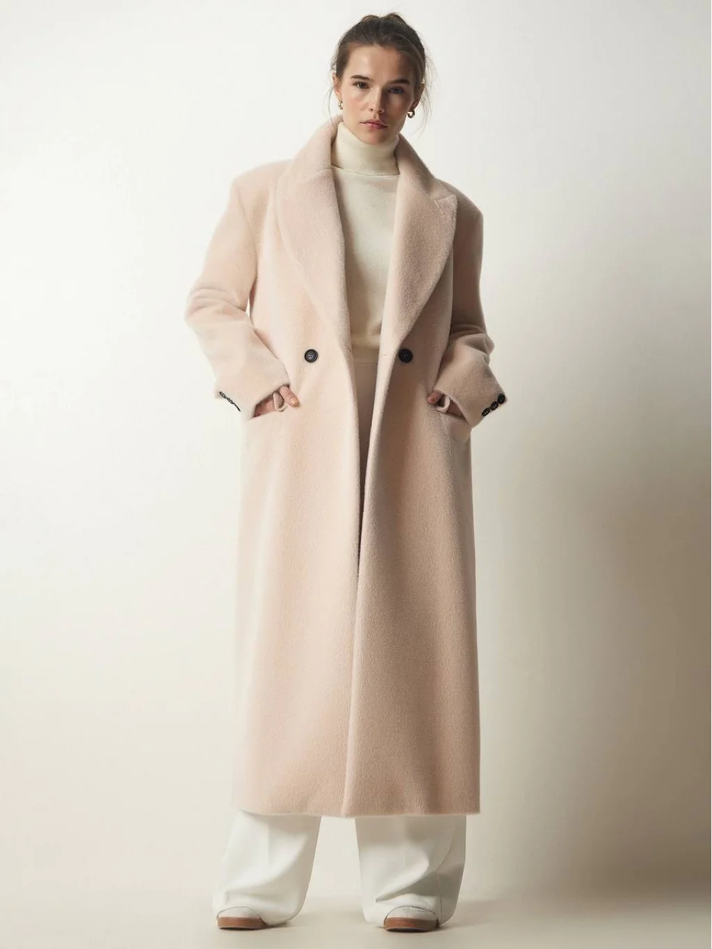 UZUN KOLLU, KATLI YAKA, ÖNÜ DÜĞMELİ KAPAK CEPLİ, İÇİ ASTARLI, UZUN KABAN