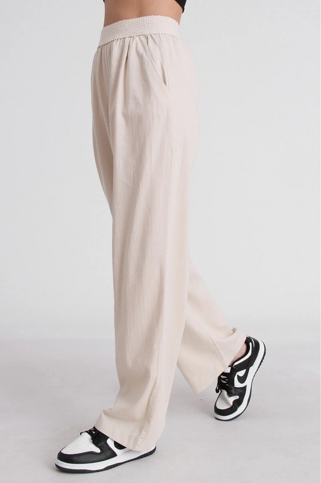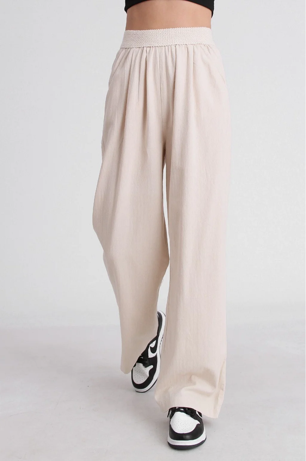BELİ LASTİKLİ KETEN PANTOLON EKRU