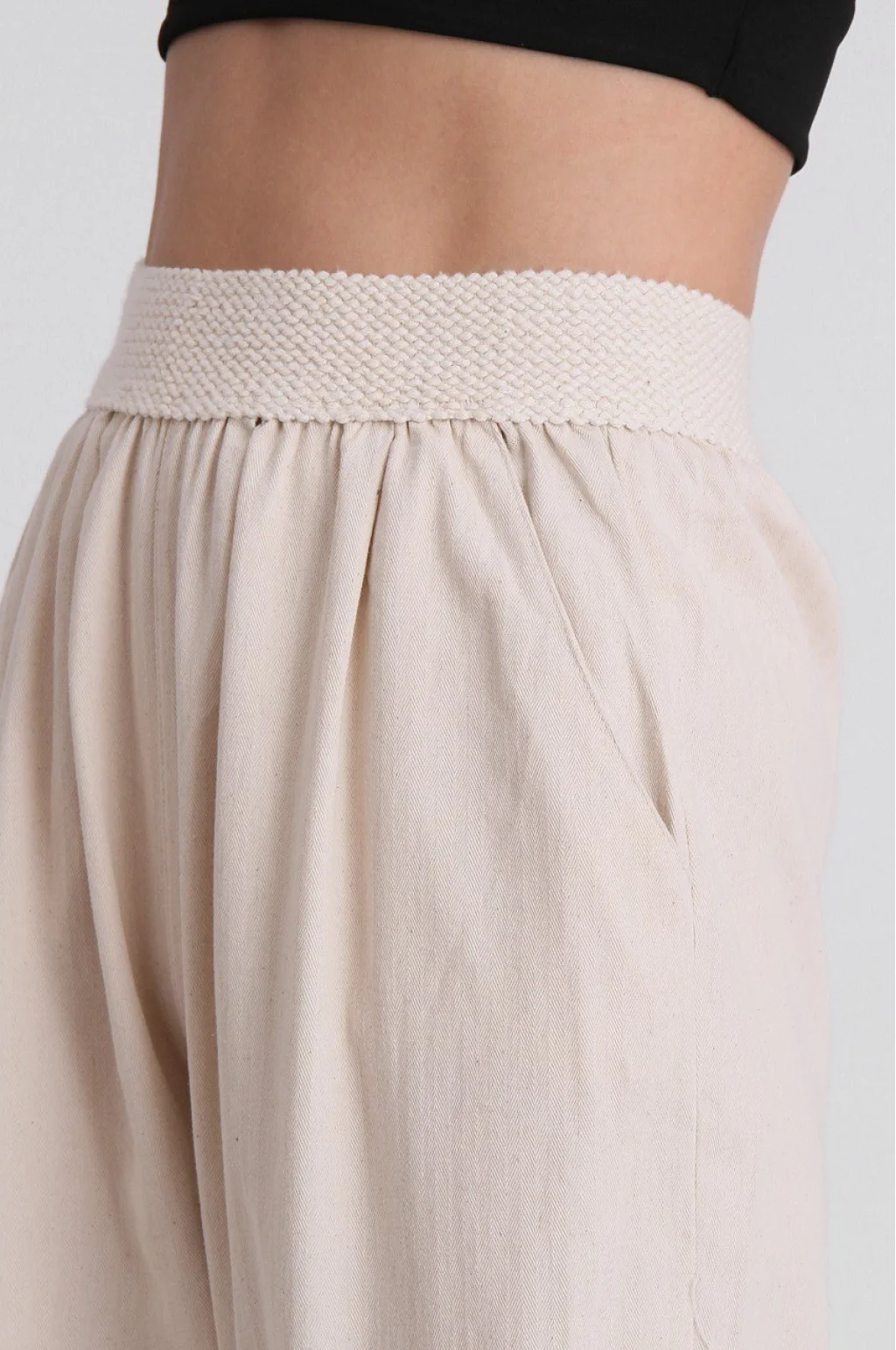 BELİ KEMER LASTİKLİ KETEN PANTOLON EKRU
