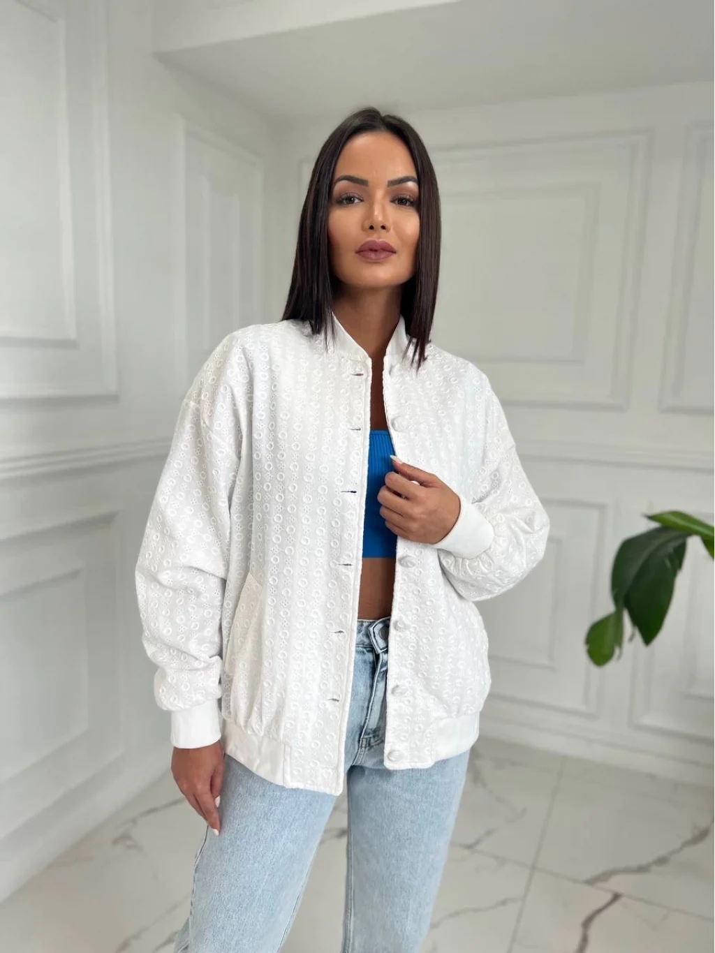 İnce Kumaş Şık Tasarım Beyaz Bomber Ceket