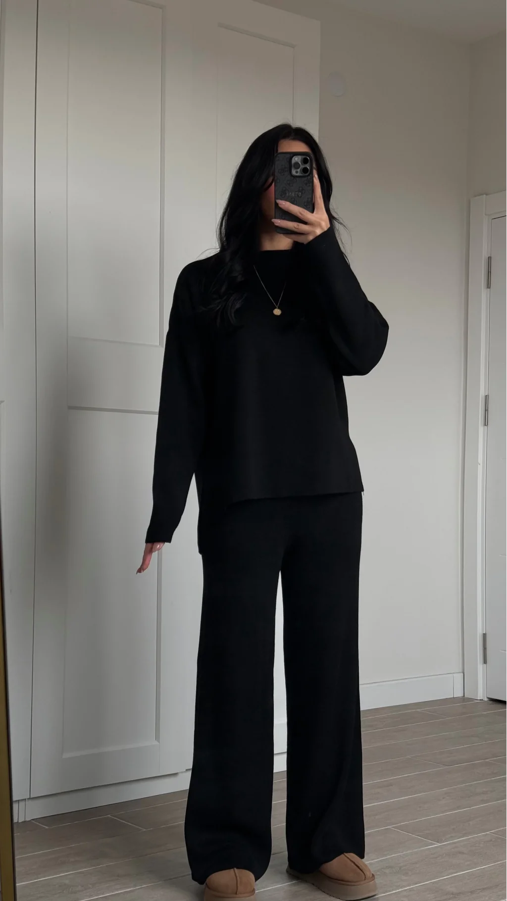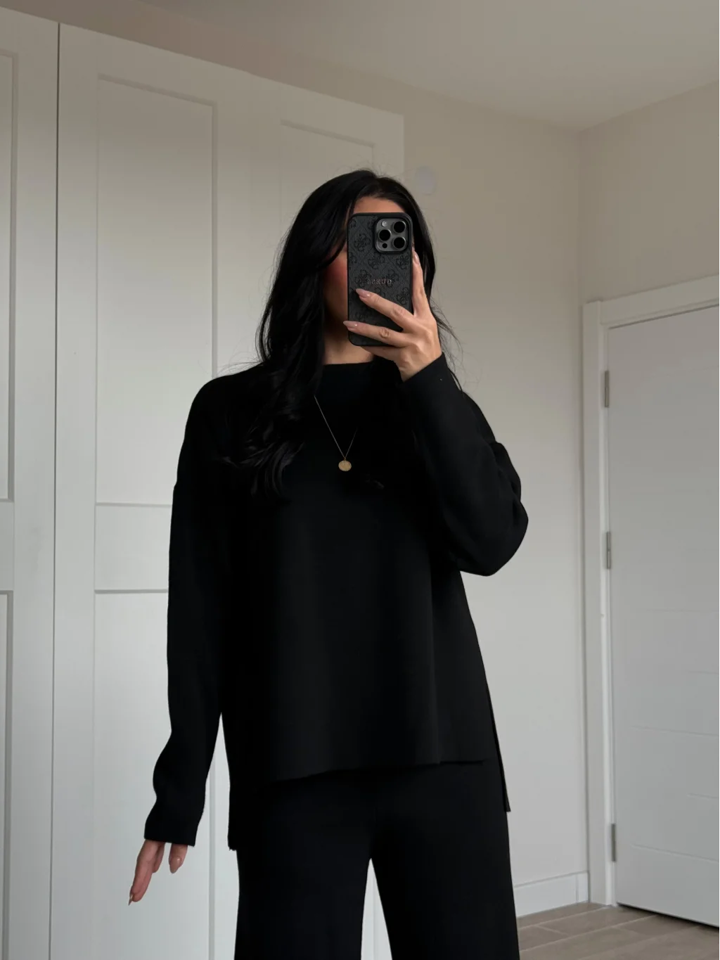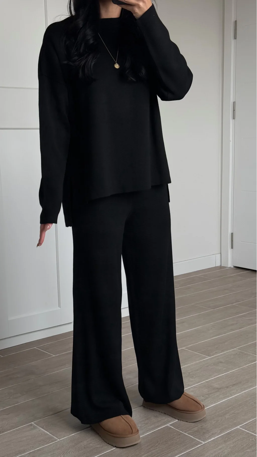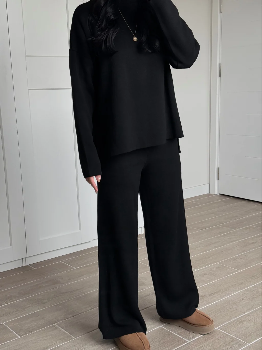 Bisiklet Yaka Yırtmaçlı Siyah Kazak Pantolon Triko Takım