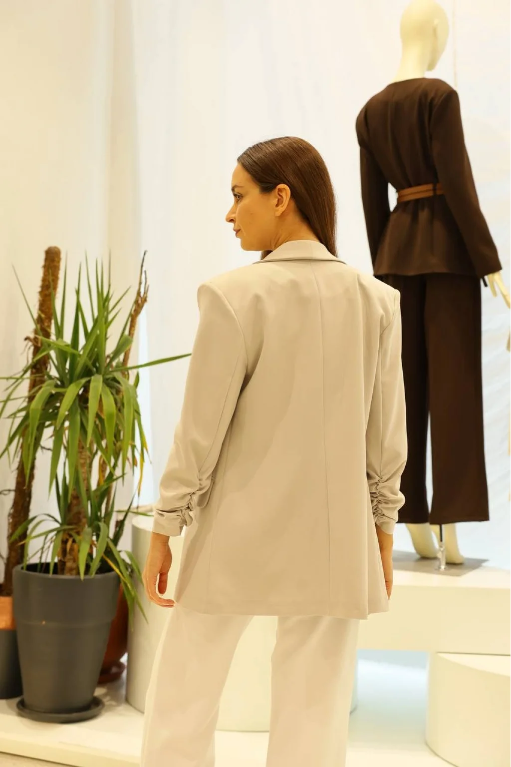Büzgü Kol Gri Blazer Ceket