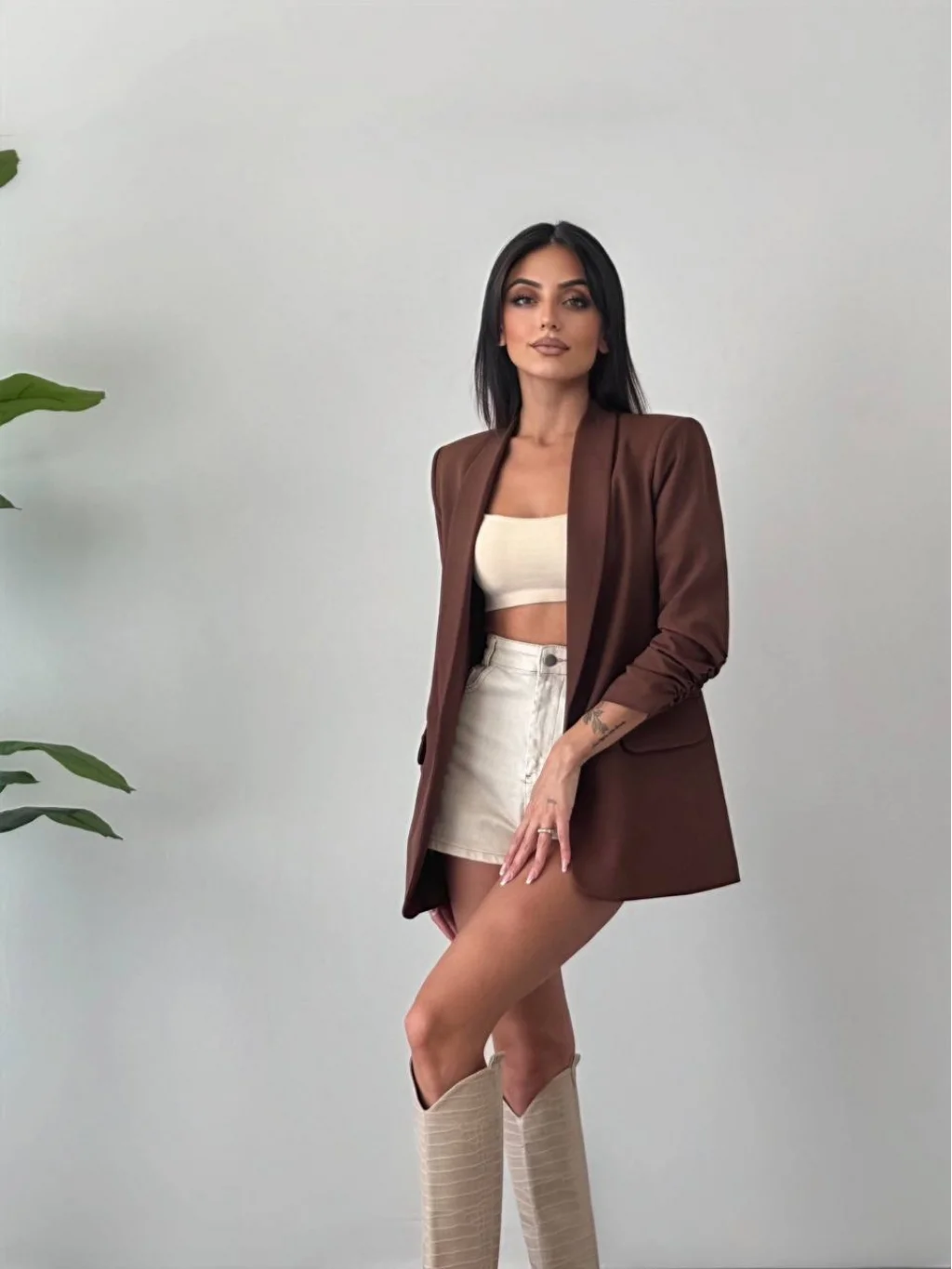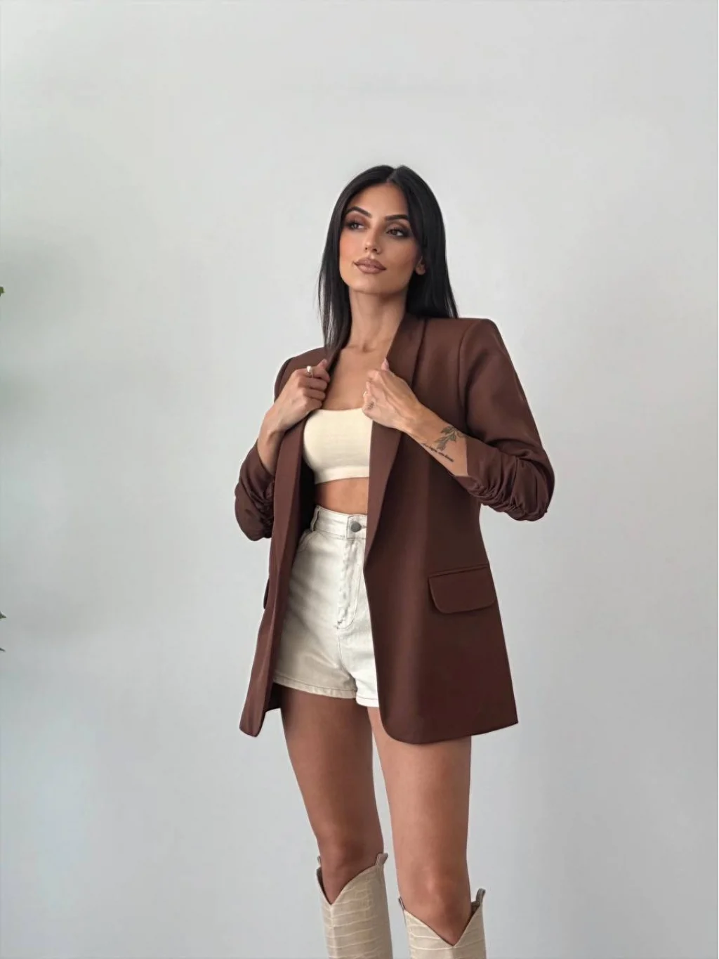 MYRA Büzgü Kol Kahverengi Blazer Ceket, şıklığıyla ön plana çıkan dış giyim kategorisindeki iddialı bir parçadır.