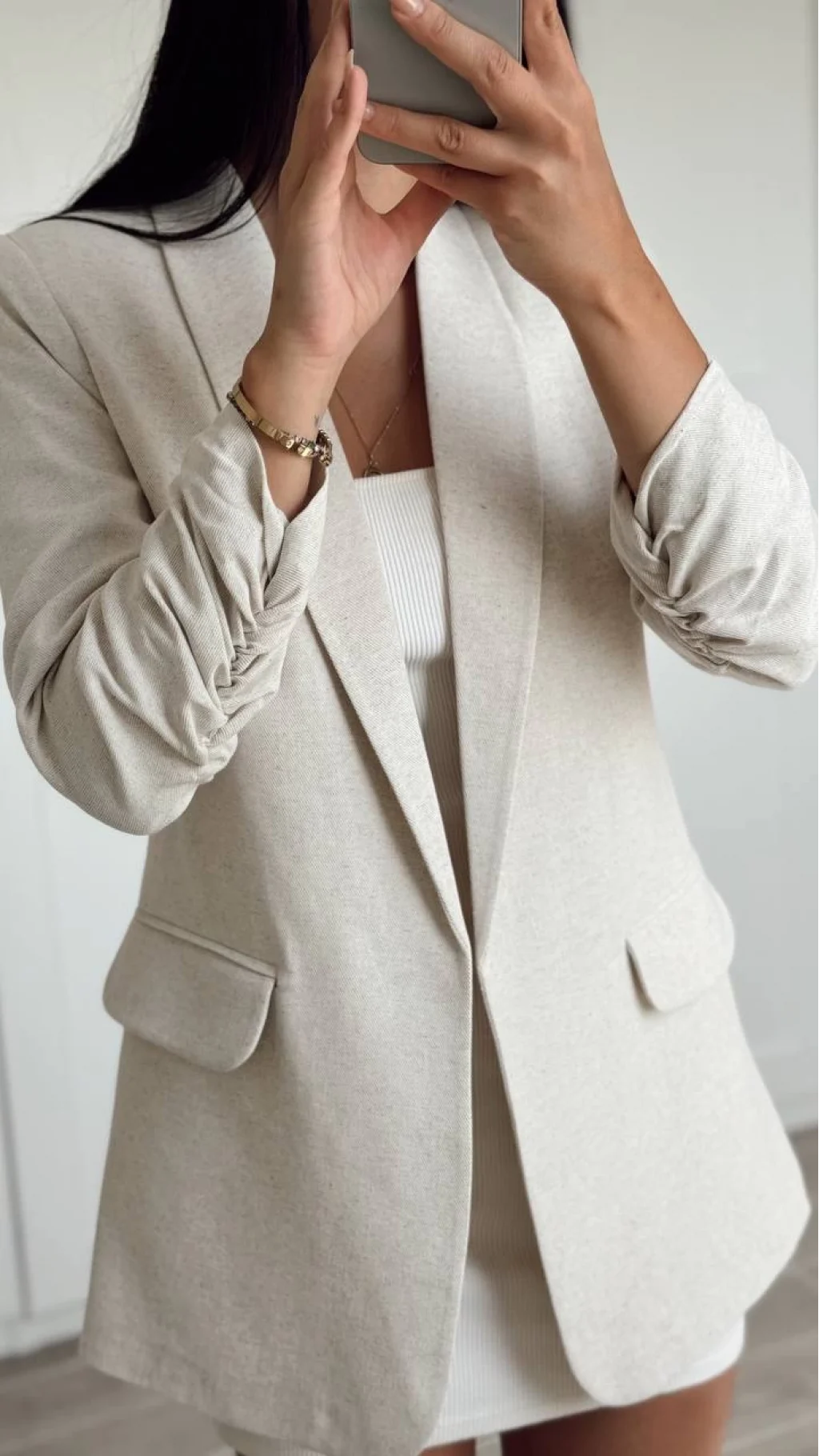 Büzgü Kol Keten Ceket