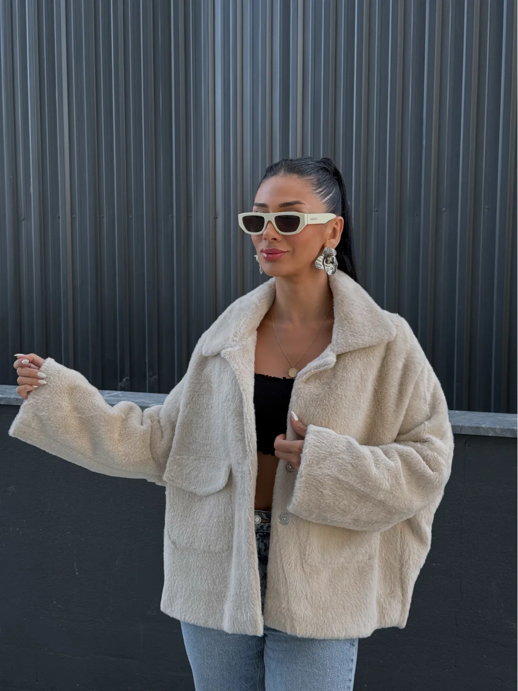 • MYRA Cepli Alpaka Kürk Kısa Kaban ile tarzınızı tamamlayın.
