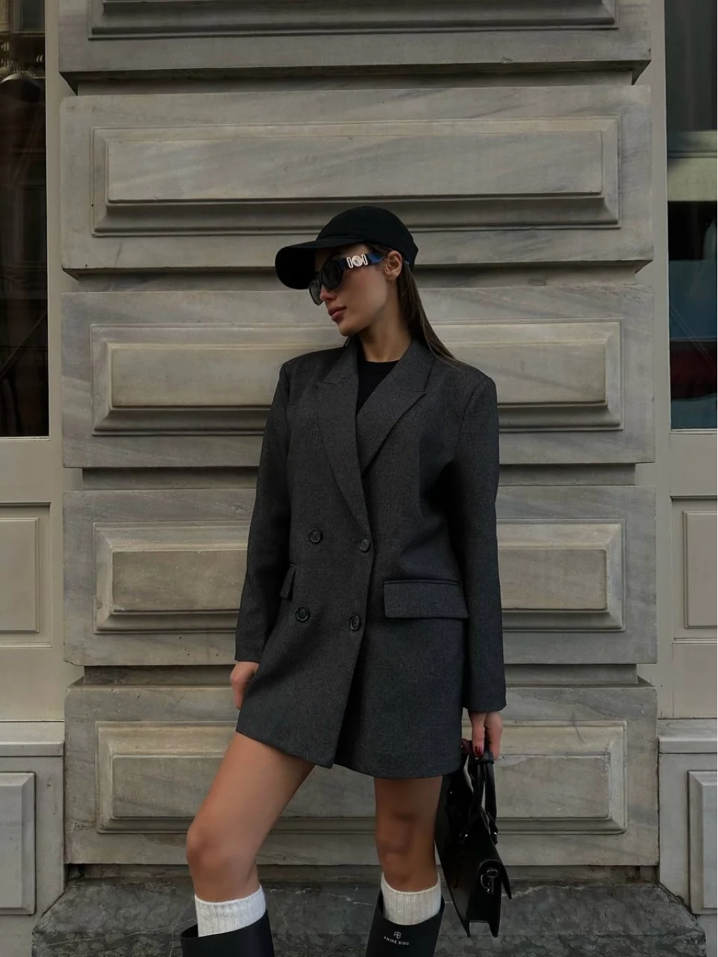 CEPLİ DÜĞMELİ GRİ CEKET
