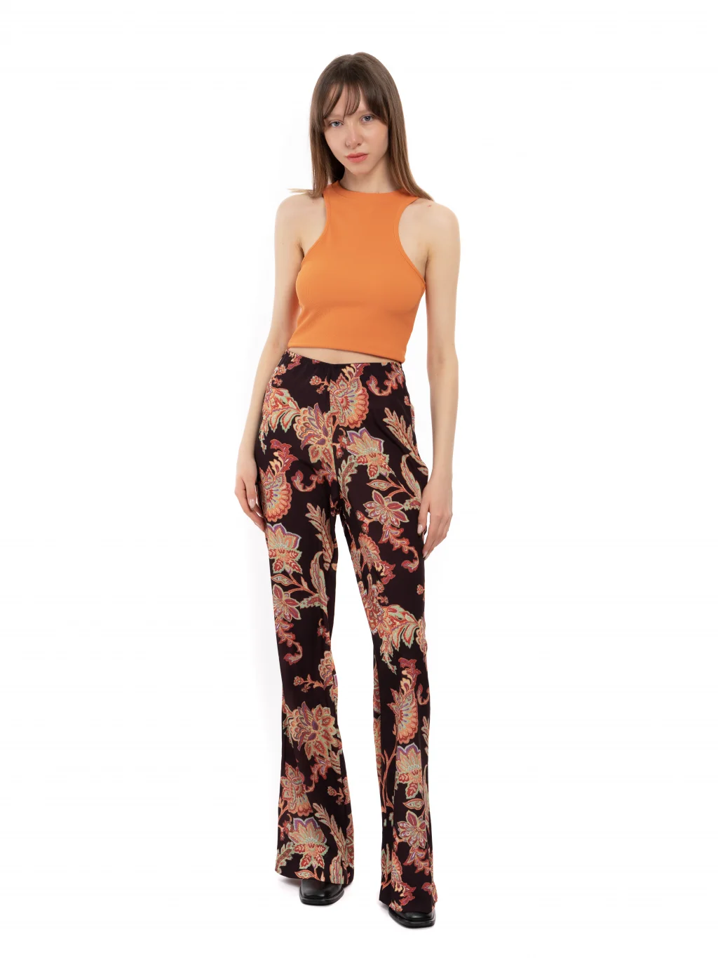 Çiçek Desenli Rahat Kesim Yüksek Bel Pantolon