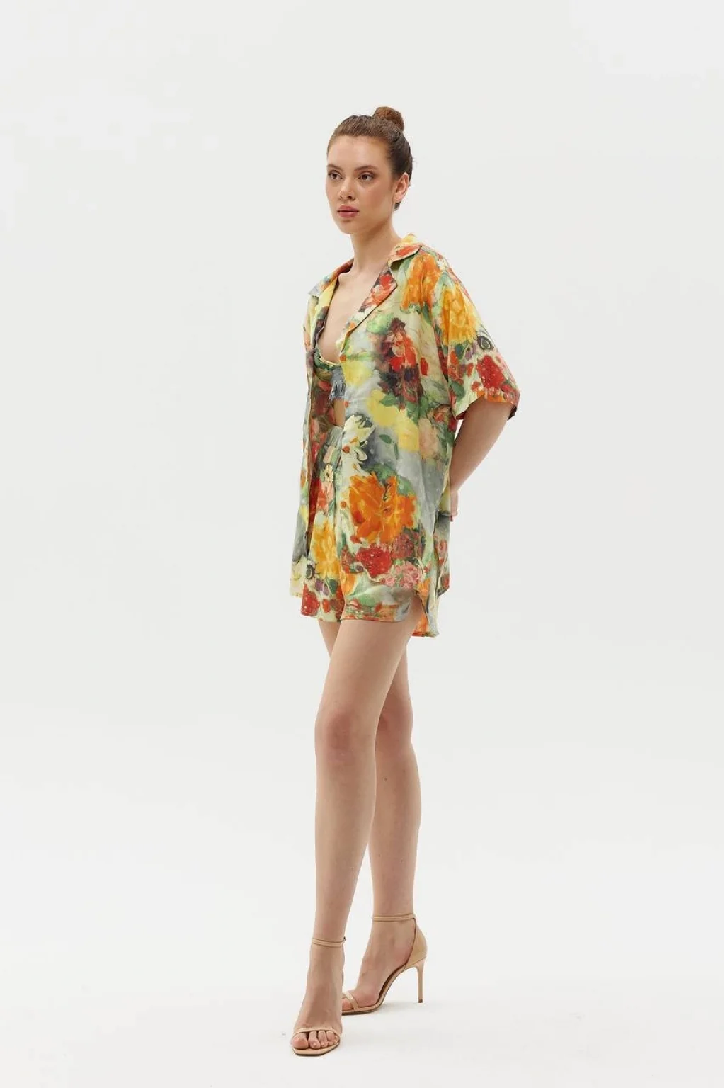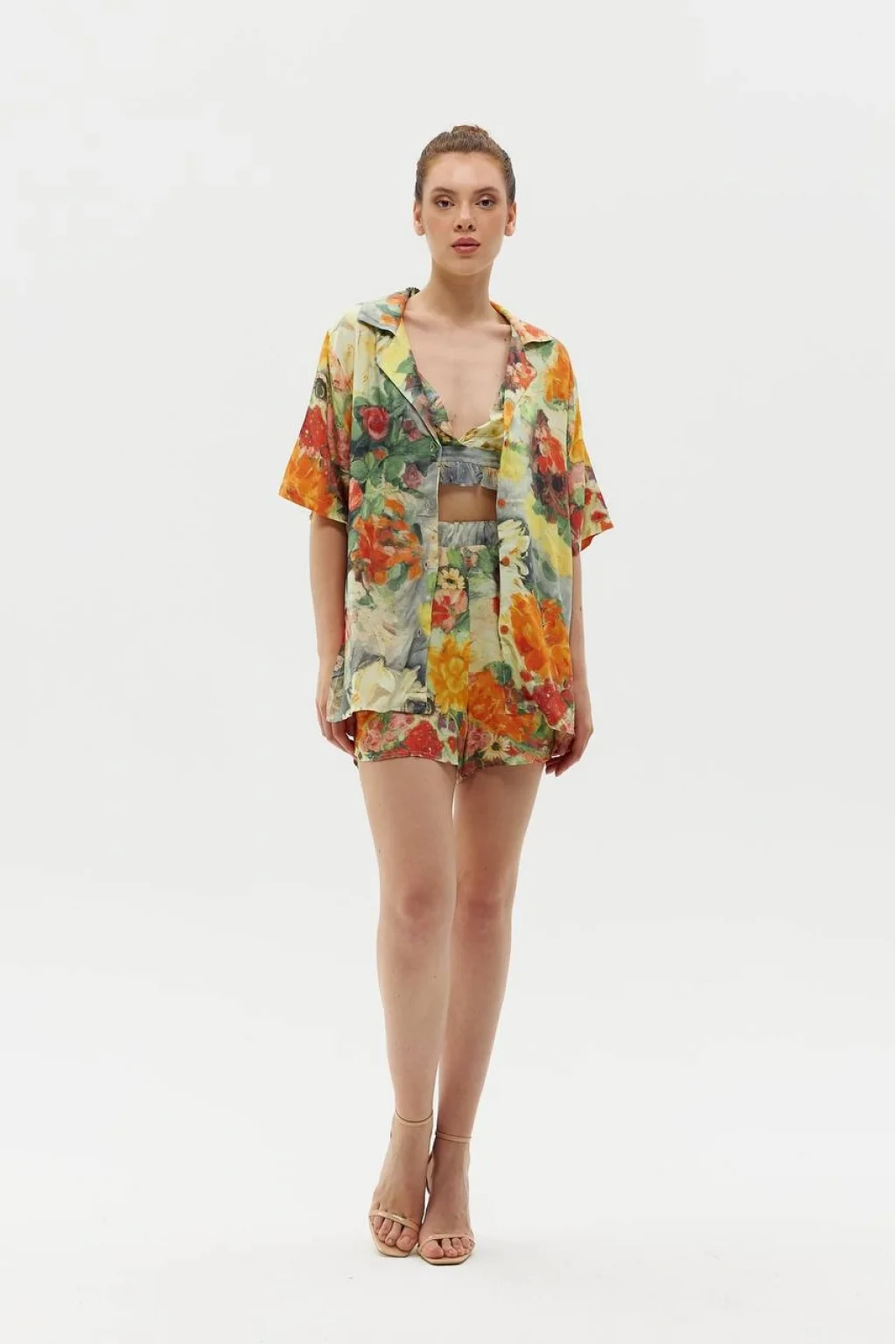 Çiçek Desenli 3 lü Takım. Şort Gömlek Ve Büstiyerden Oluşmaktadır