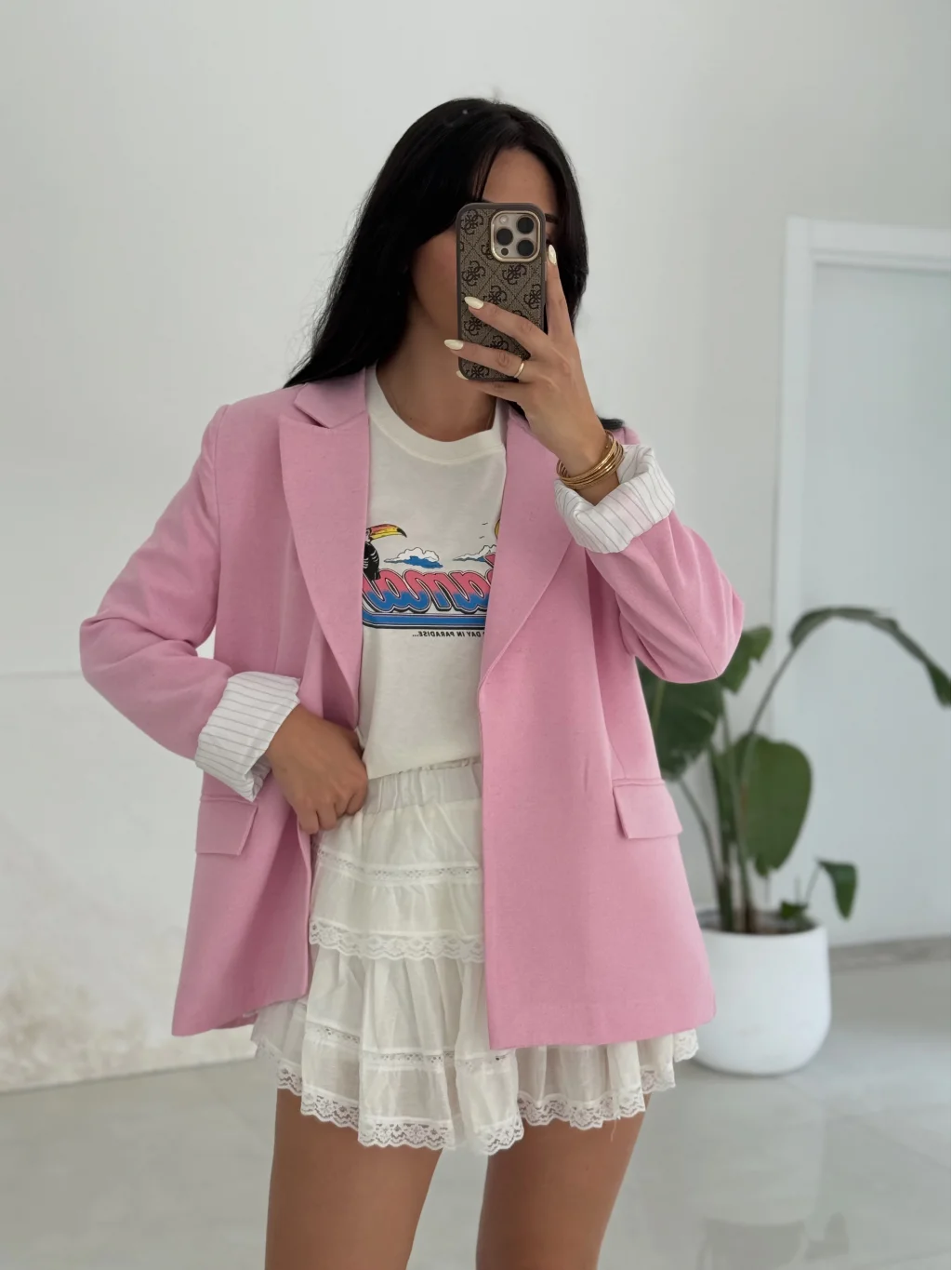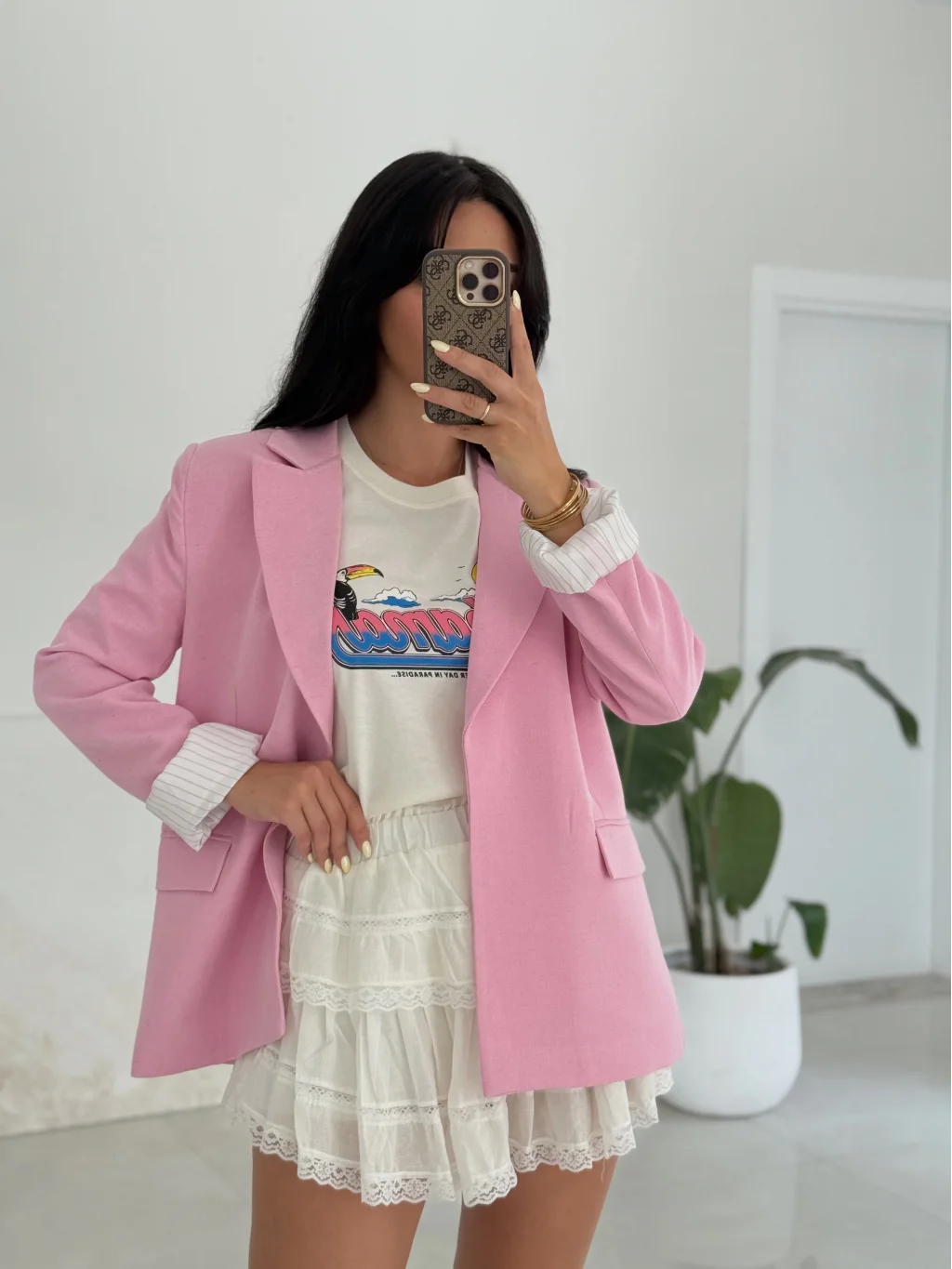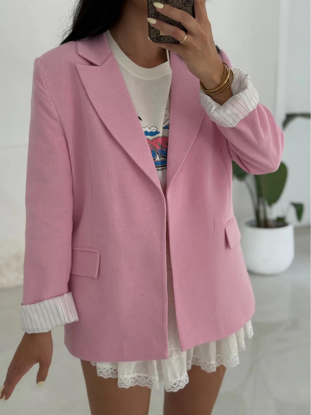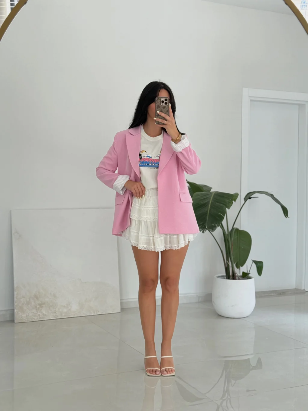 Pembe Keten Ceket