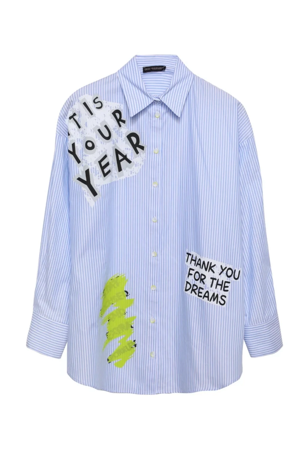 QUZU Çizgi Detaylı Baskılı Oversize Gömlek Mavi