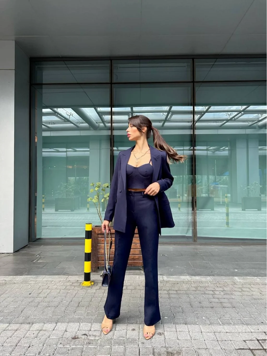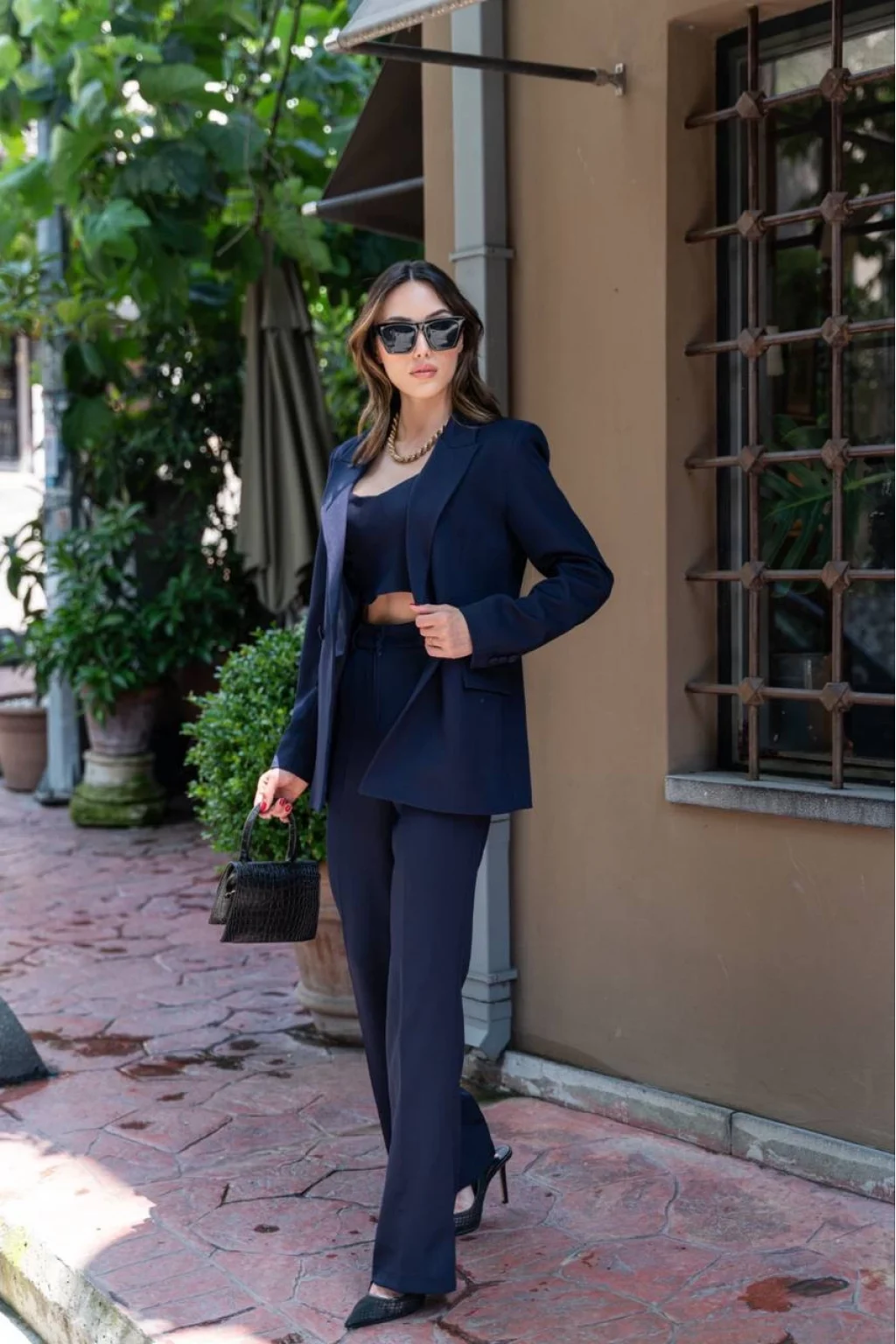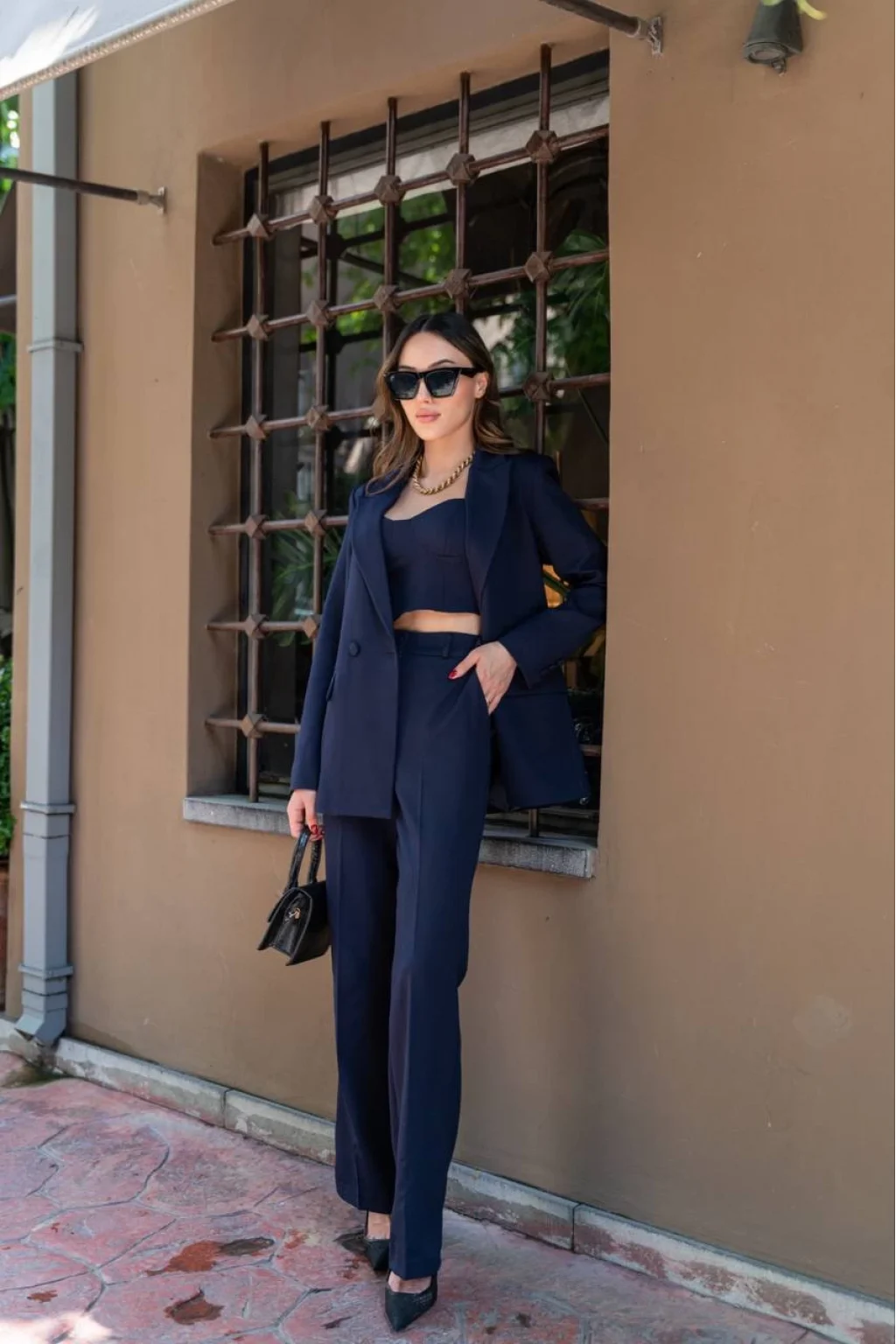 PREMİUM LACİVERT CEKET CROP PANTOLON TAKIM