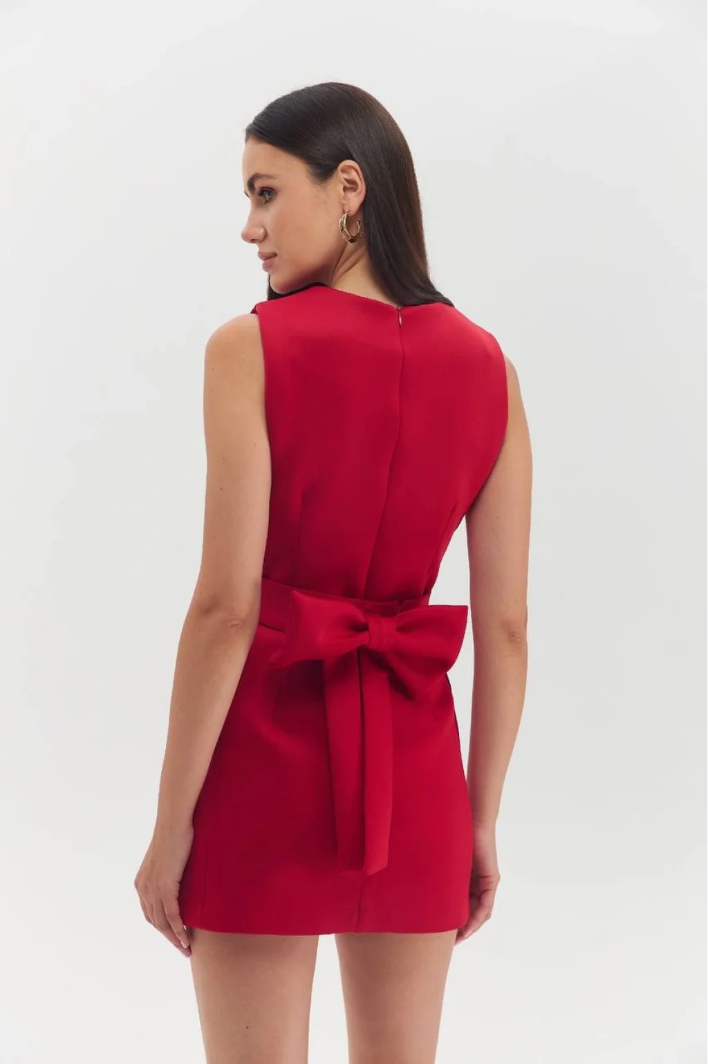 DALGIÇ KUMAŞ FİYONK KEMERLİ KIRMIZI MİNİ ELBİSE