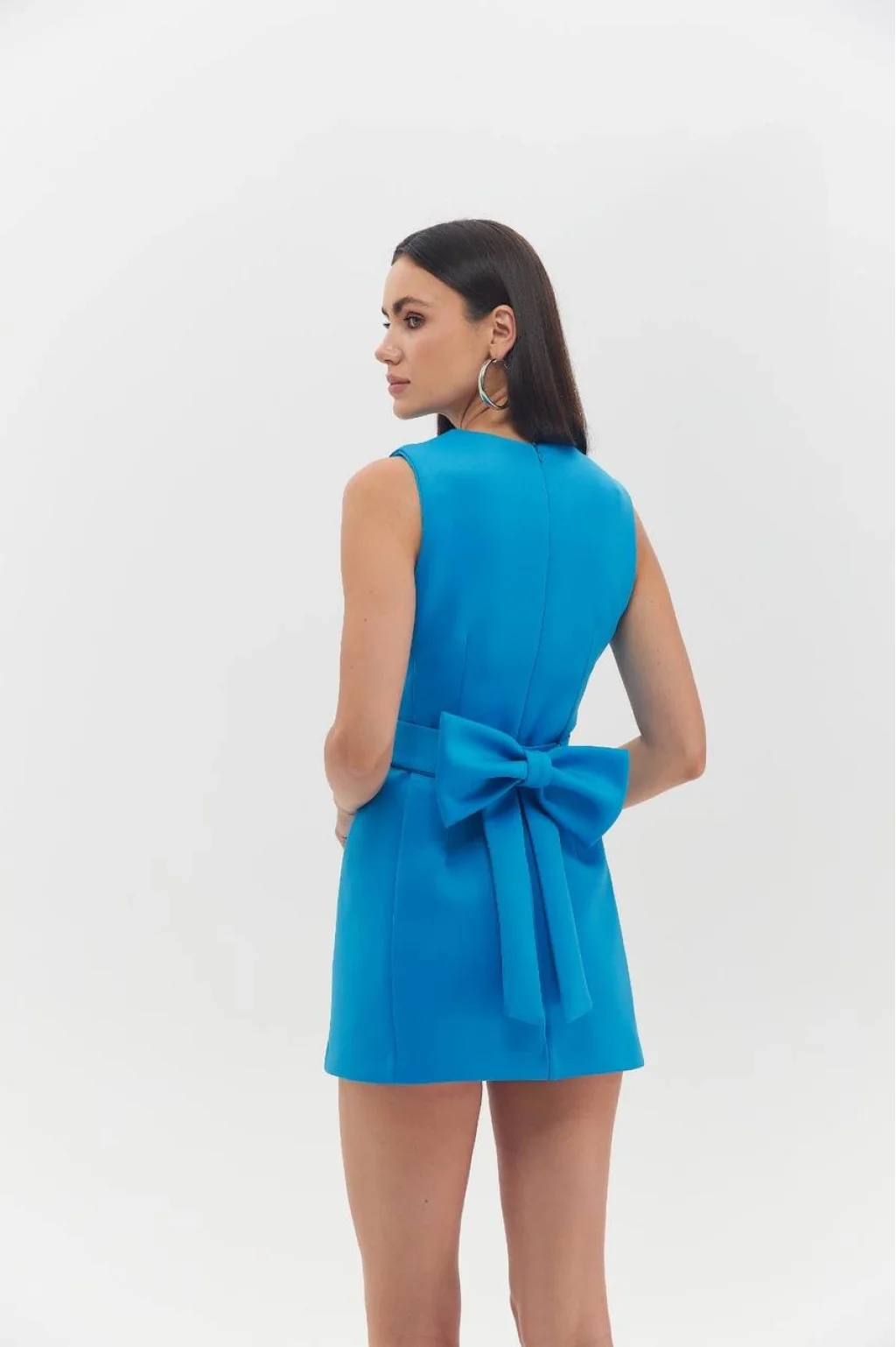 DALGIÇ KUMAŞ FİYONK KEMERLİ MİNİ ELBİSE MAVİ