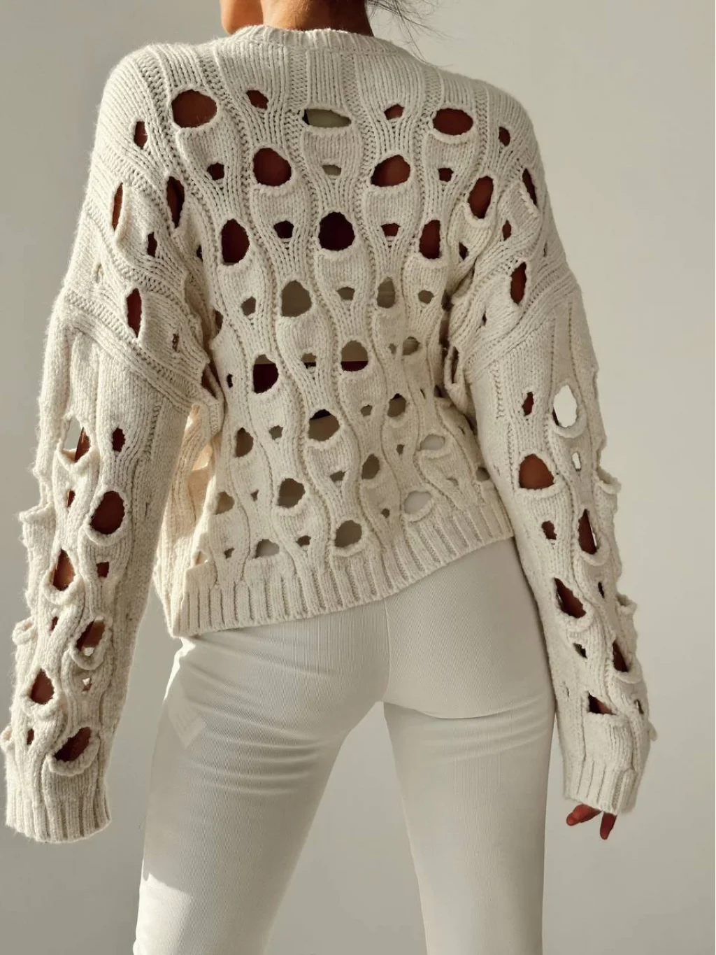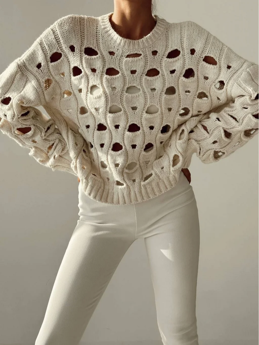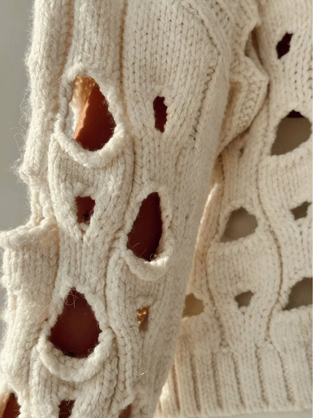 DELİKLİ KALIN TRİKO KAZAK KREM