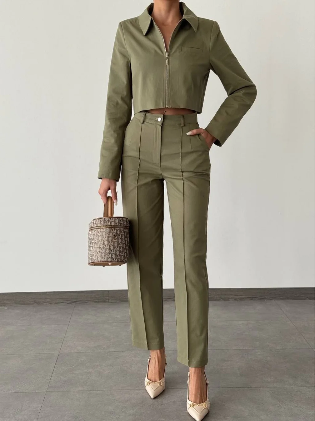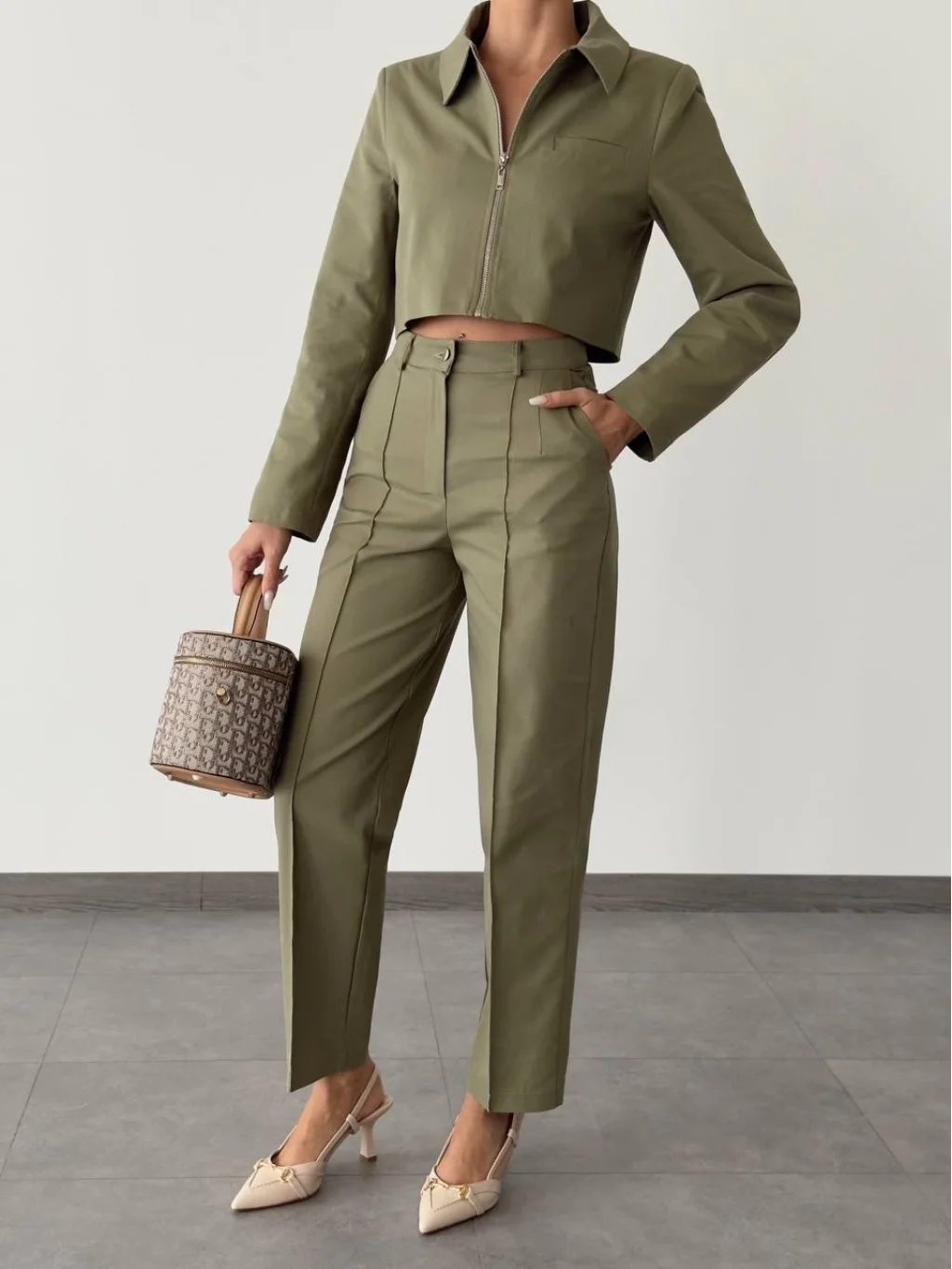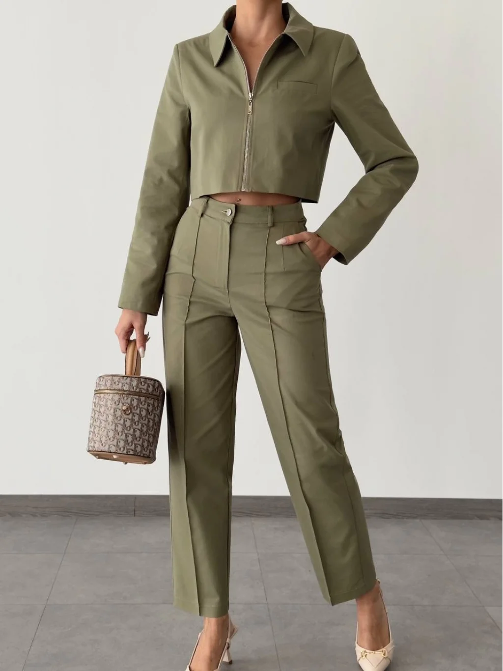 DENİM GABARDİN CEKET PANTOLON TAKIM HAKİ