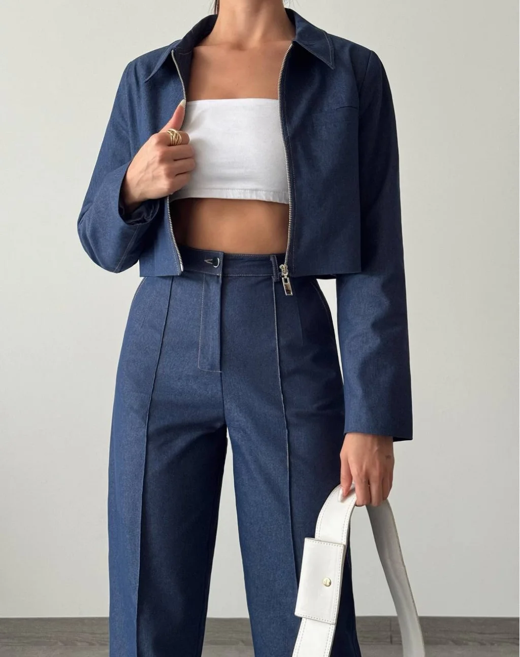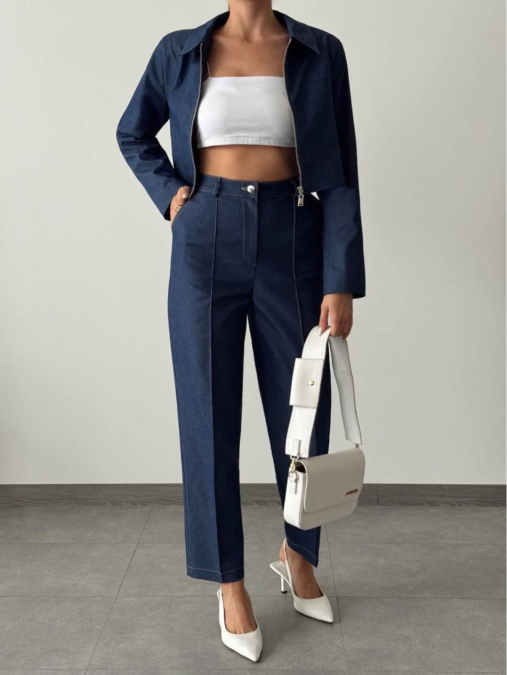 DENİM GABARDİN CEKET PANTOLON TAKIM LACİVERT