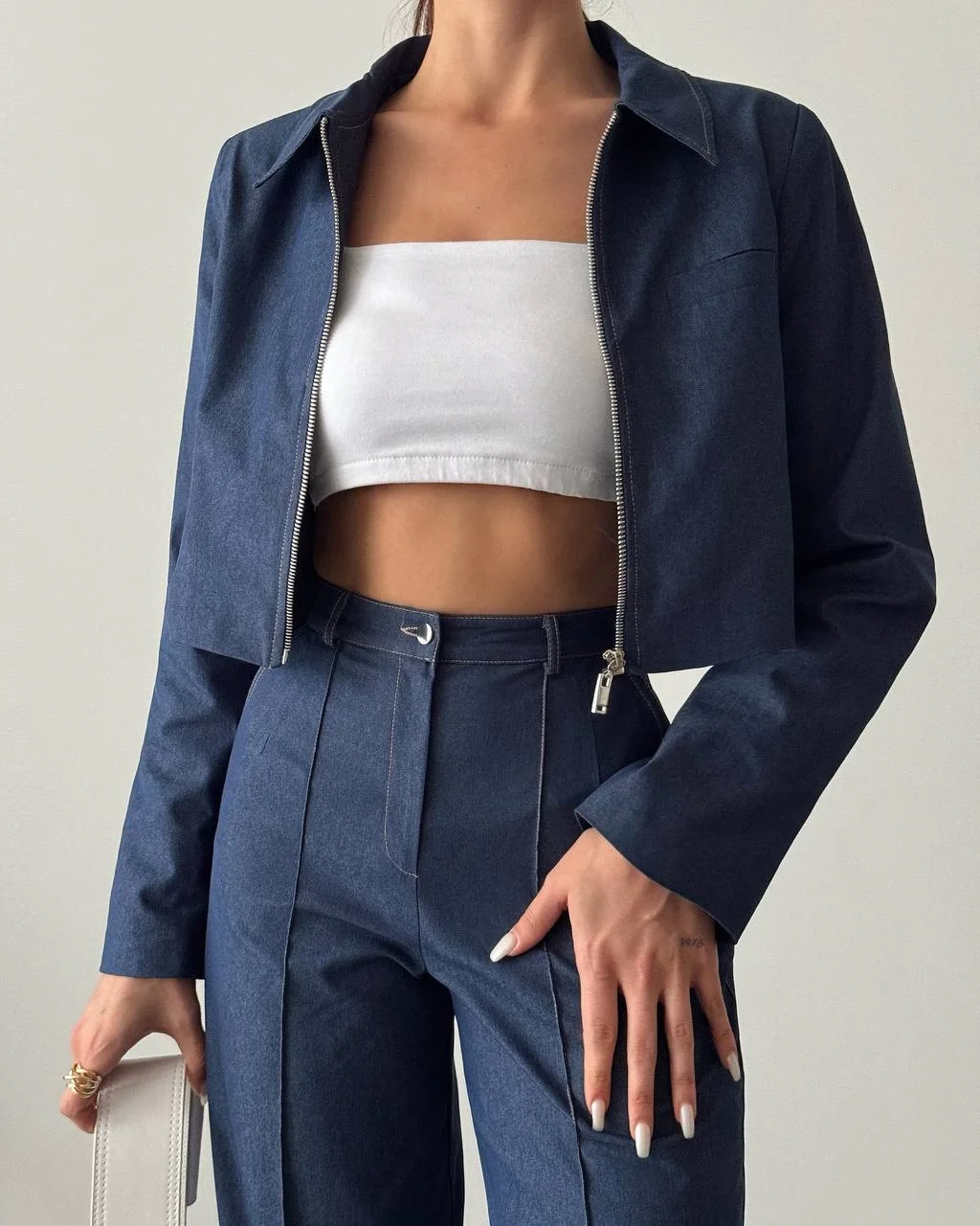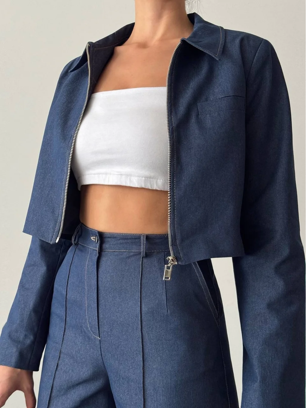 KATLI YAKALI ASTARLI FERMUAR KAPAMALI PAMUK KARIŞIMLI KUMAŞ CROP CEKET