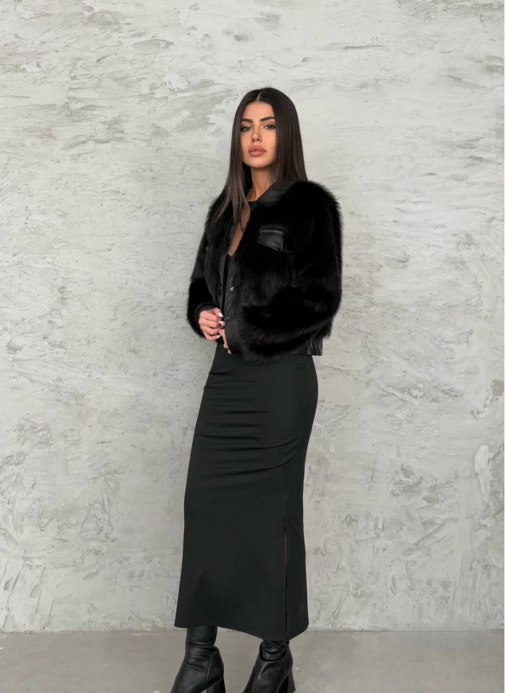 • Kürk omuzdan aşağı 48 cm uzunluğundadır.