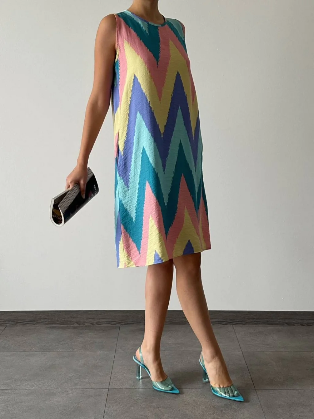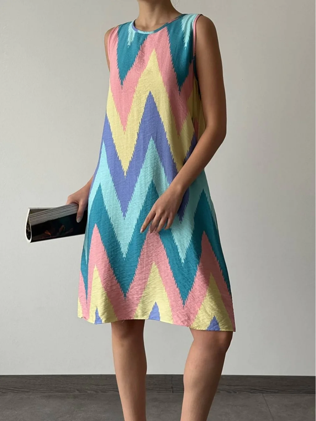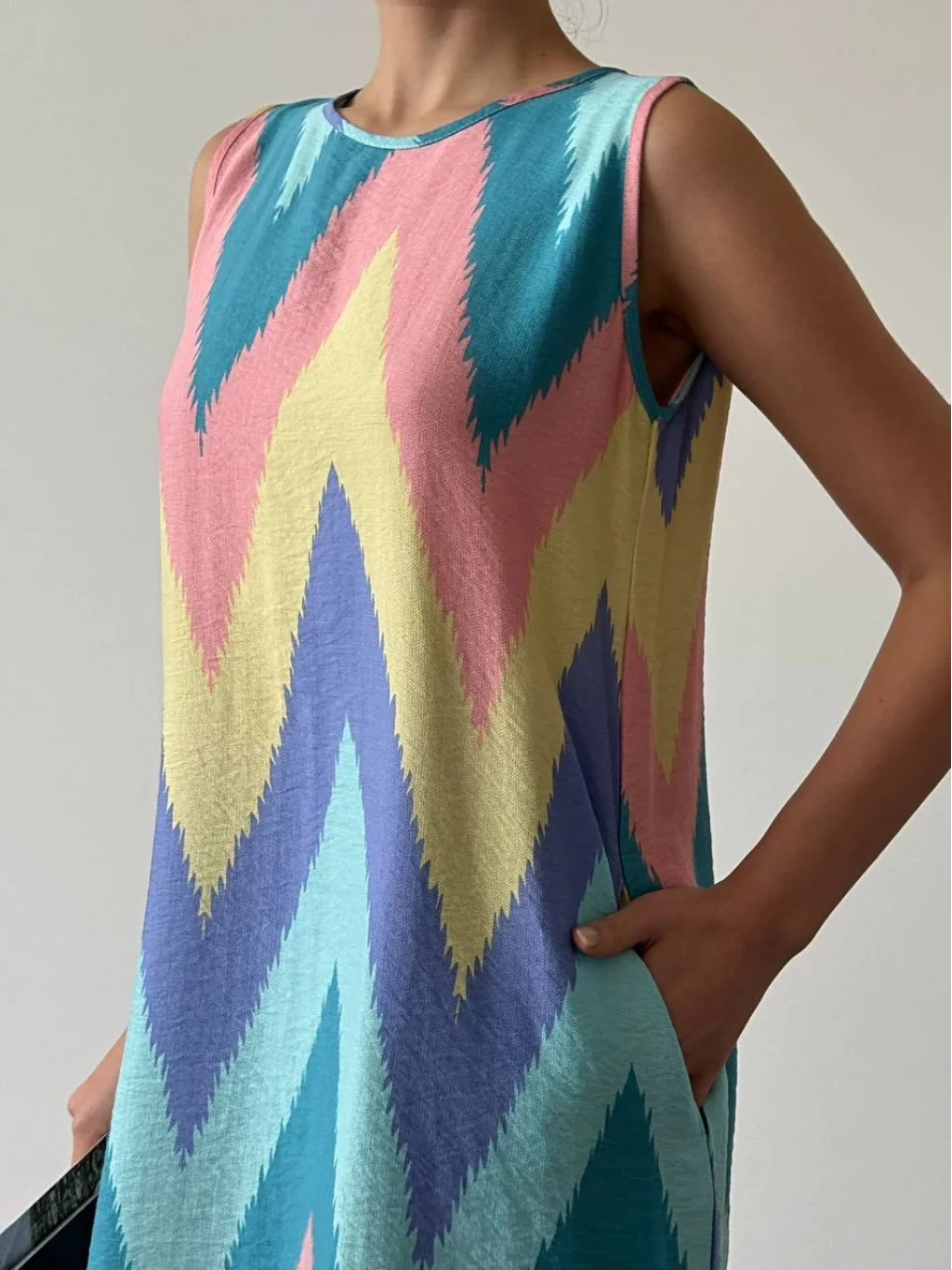 Astarsız Yandan Gizli Cepli İç Göstermeyen Desenli Elbise