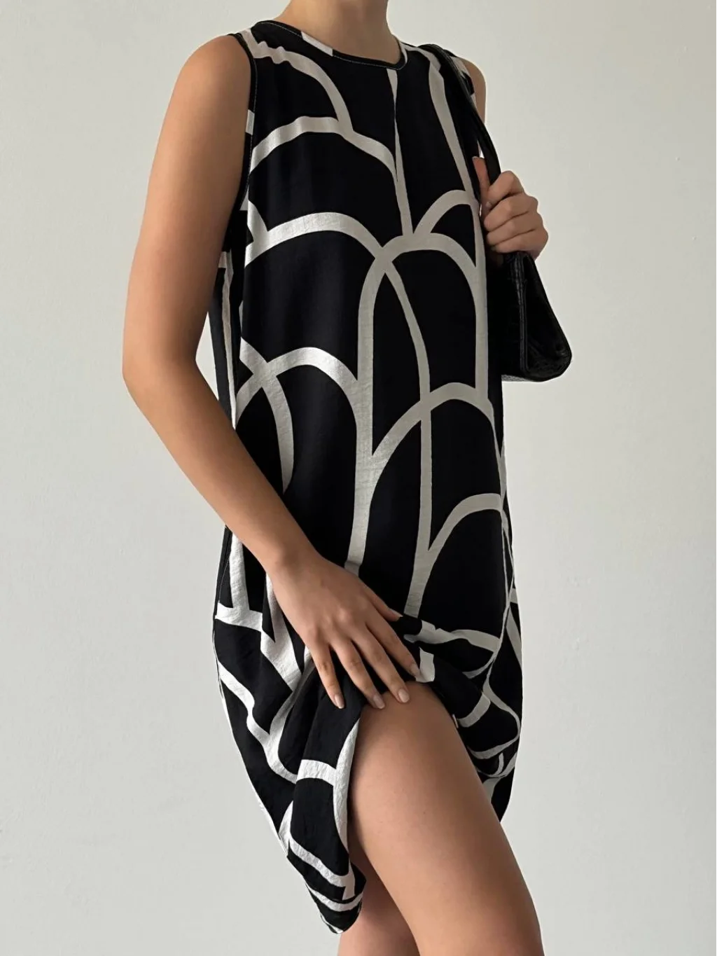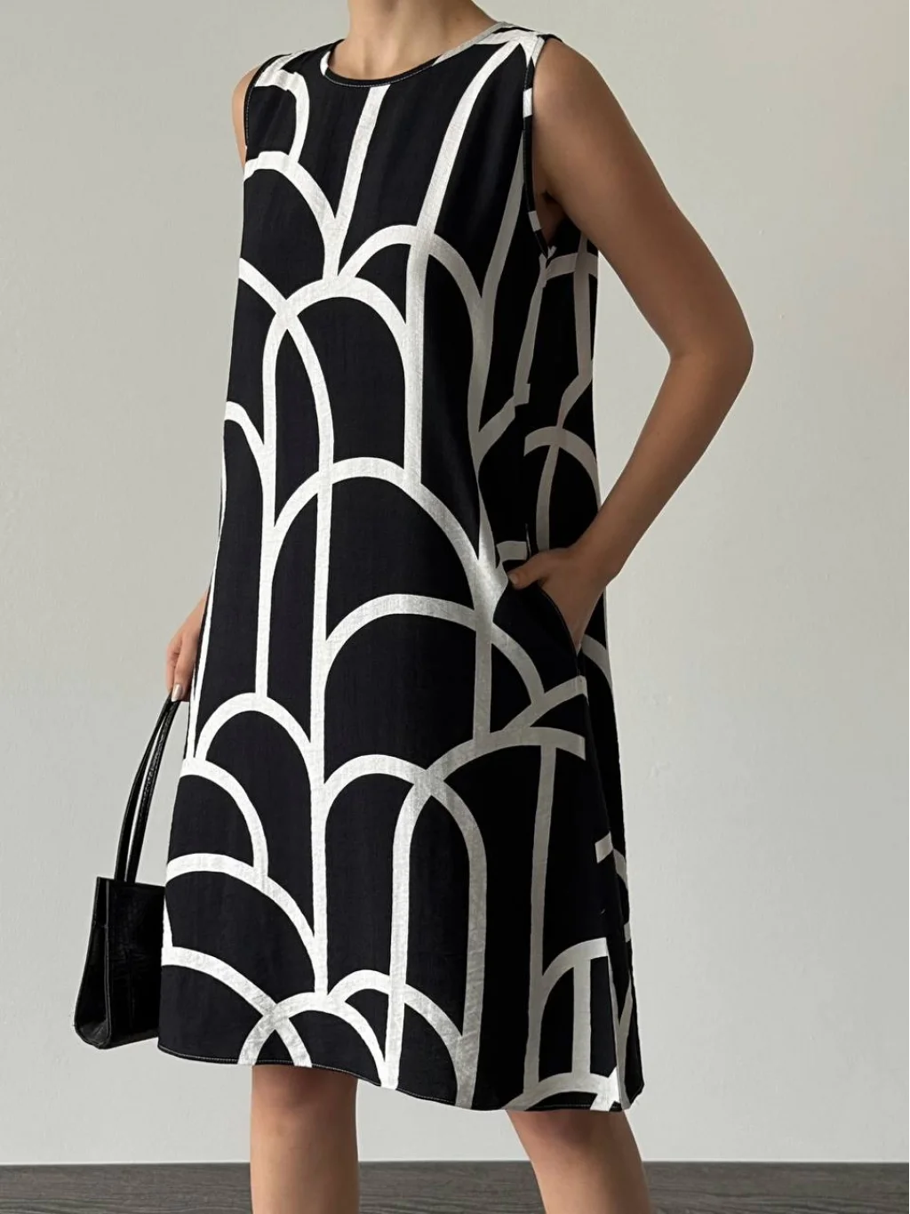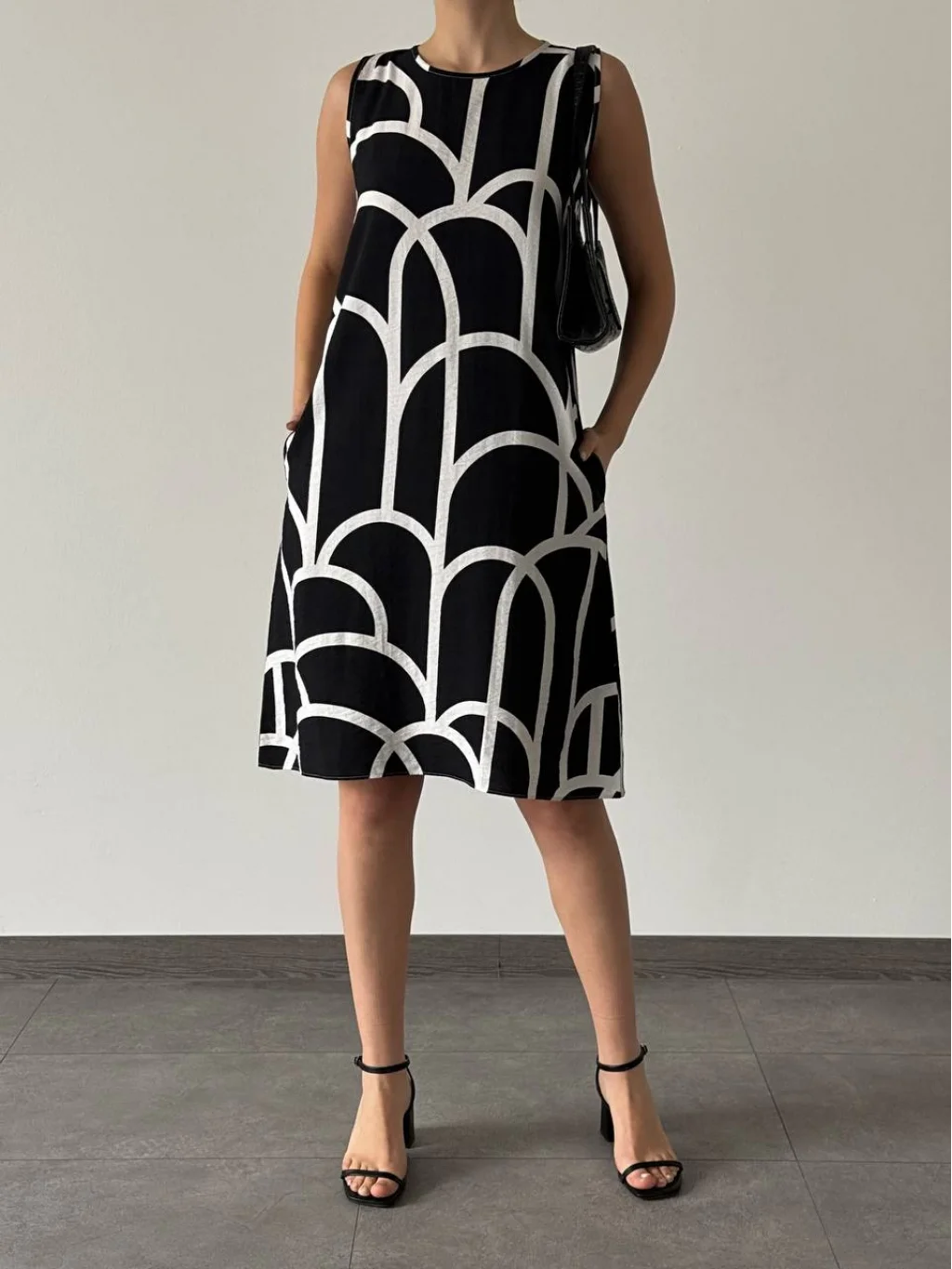 Karışık Desenli Çan Elbise Siyah Beyaz