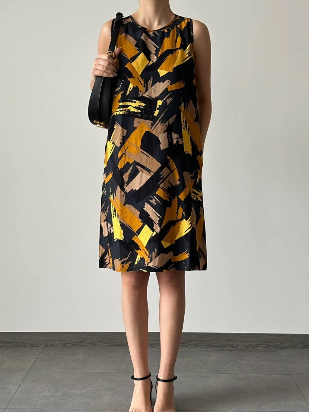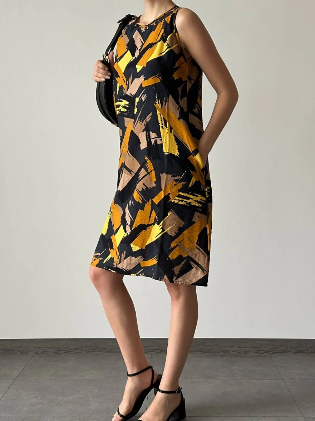 Astarsız Yandan Gizli Cepli İç Göstermeyen Desenli Elbise