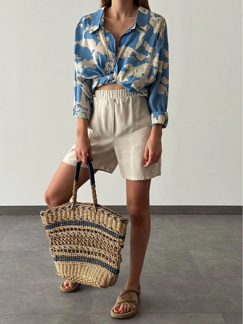 DESENLİ SALAŞ GÖMLEK MAVİ