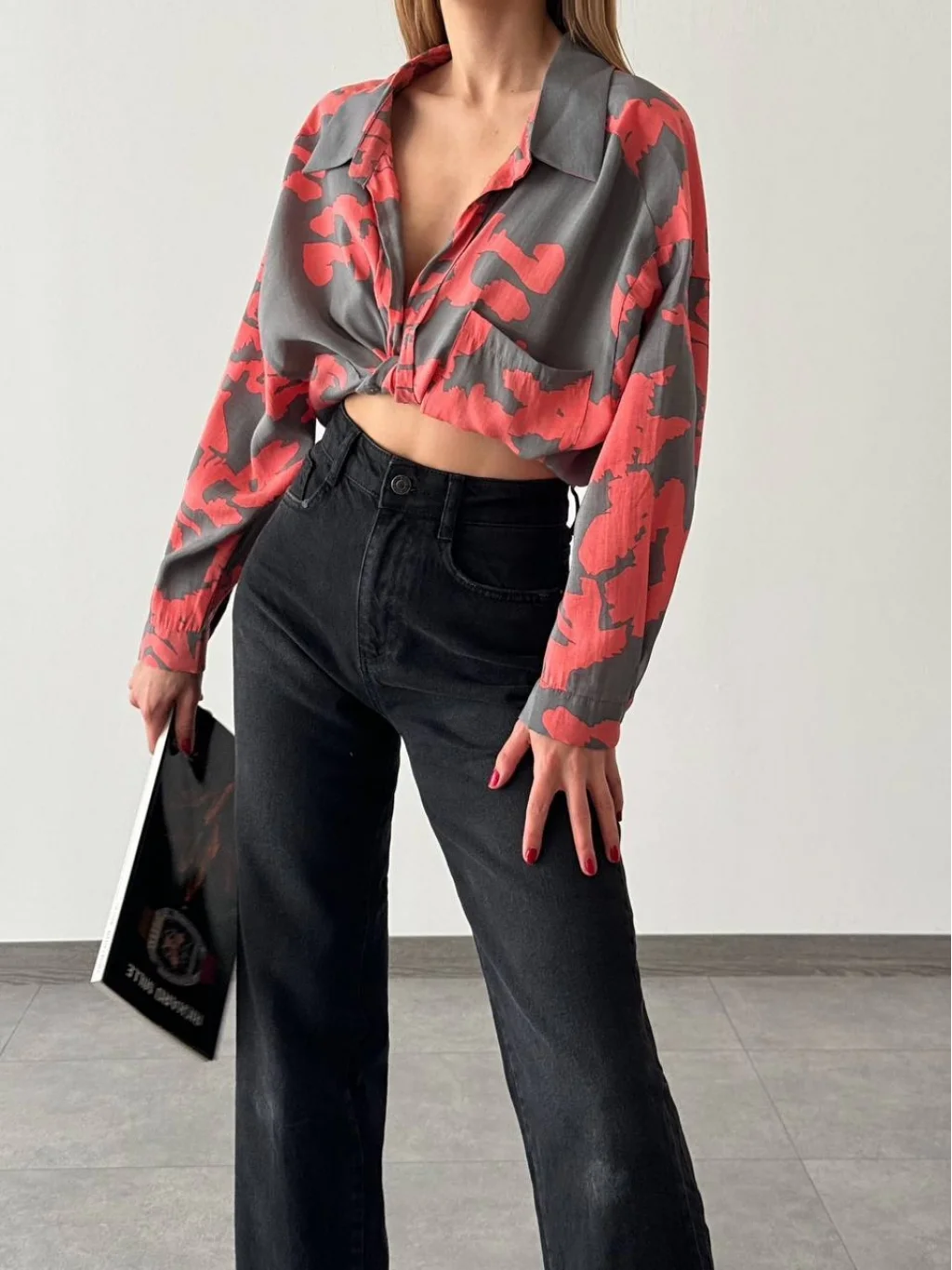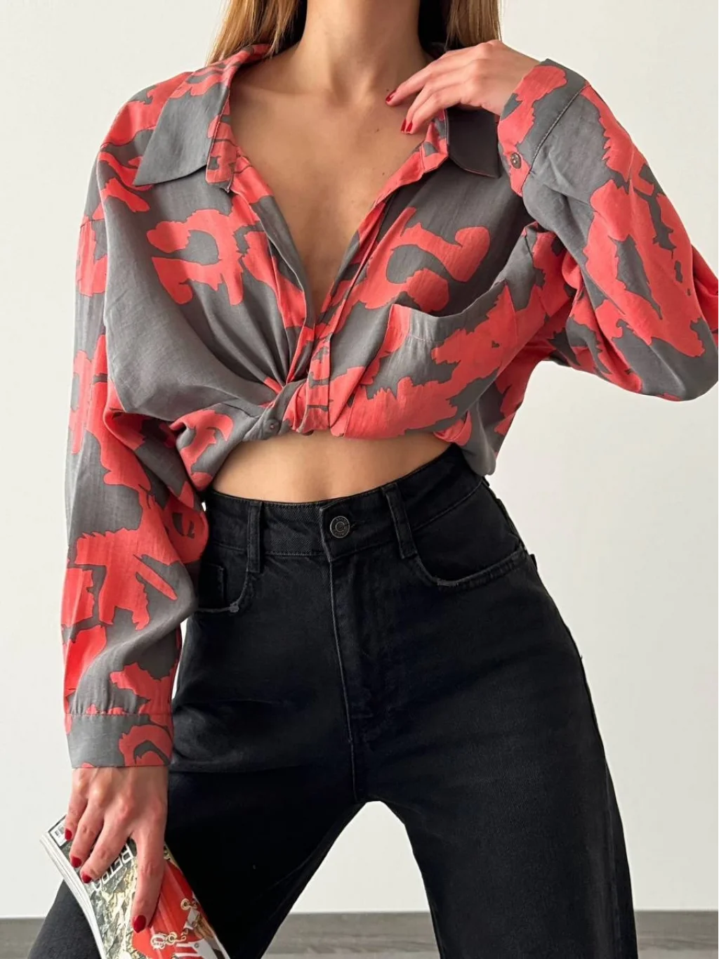 DESENLİ SALAŞ GÖMLEK NAR ÇİÇEĞİ