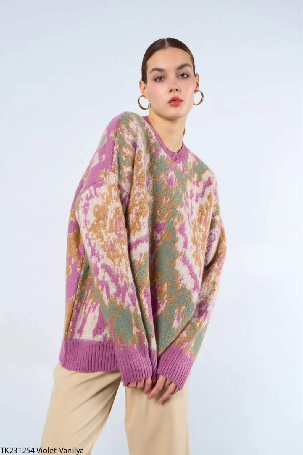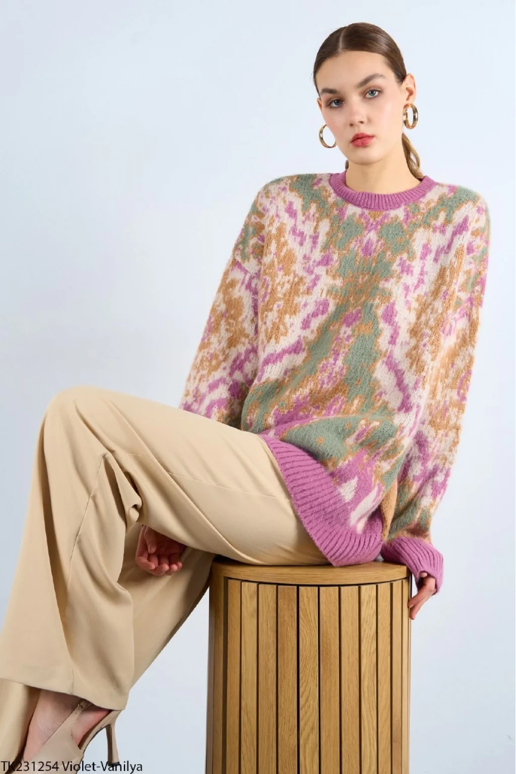 KARIŞIK DESENLİ ŞARDONLU BİSİKLET KAZAK YEŞİL PEMBE