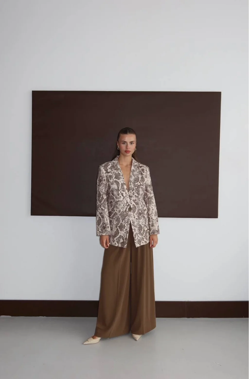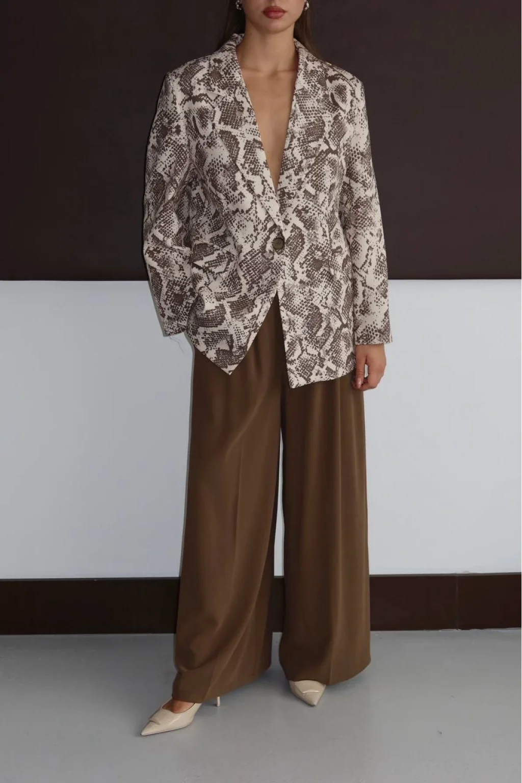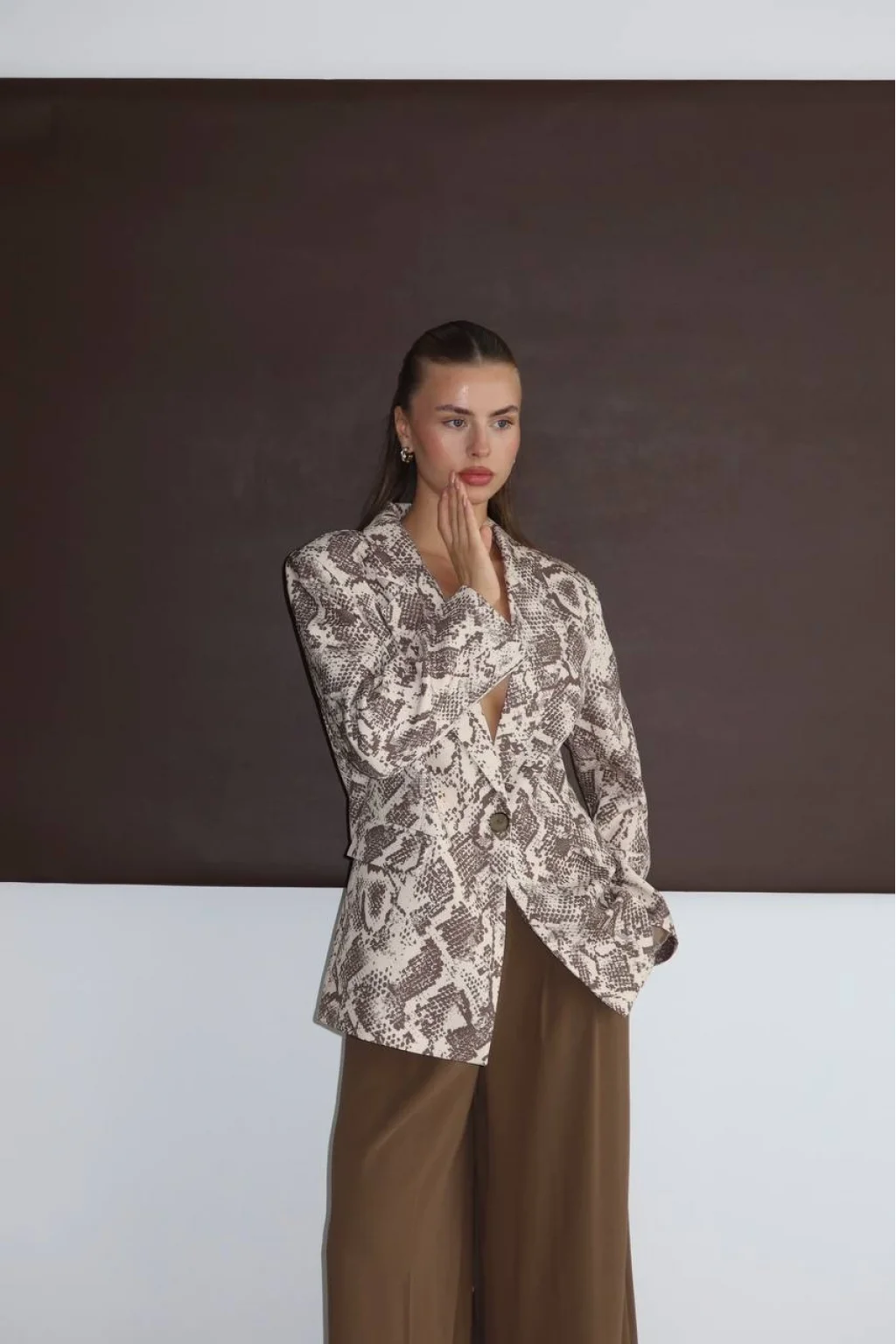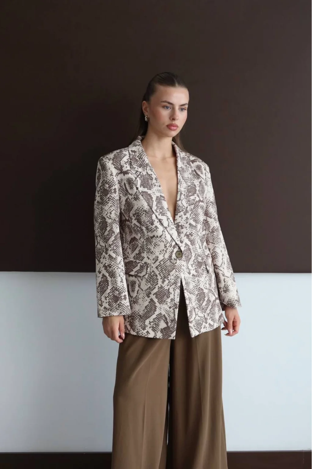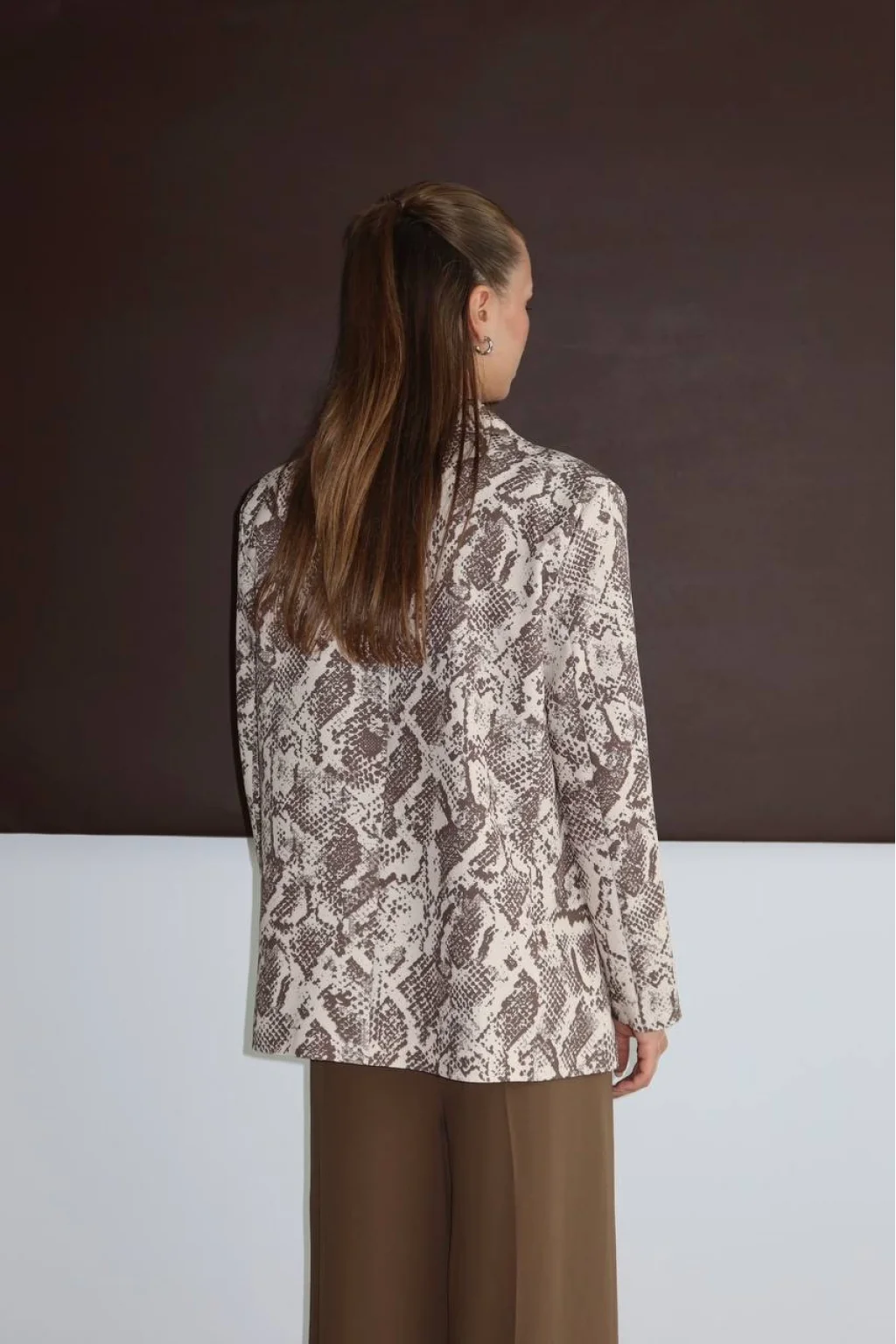 Dijital Baskı Tek Düğme Ceket-Kahve