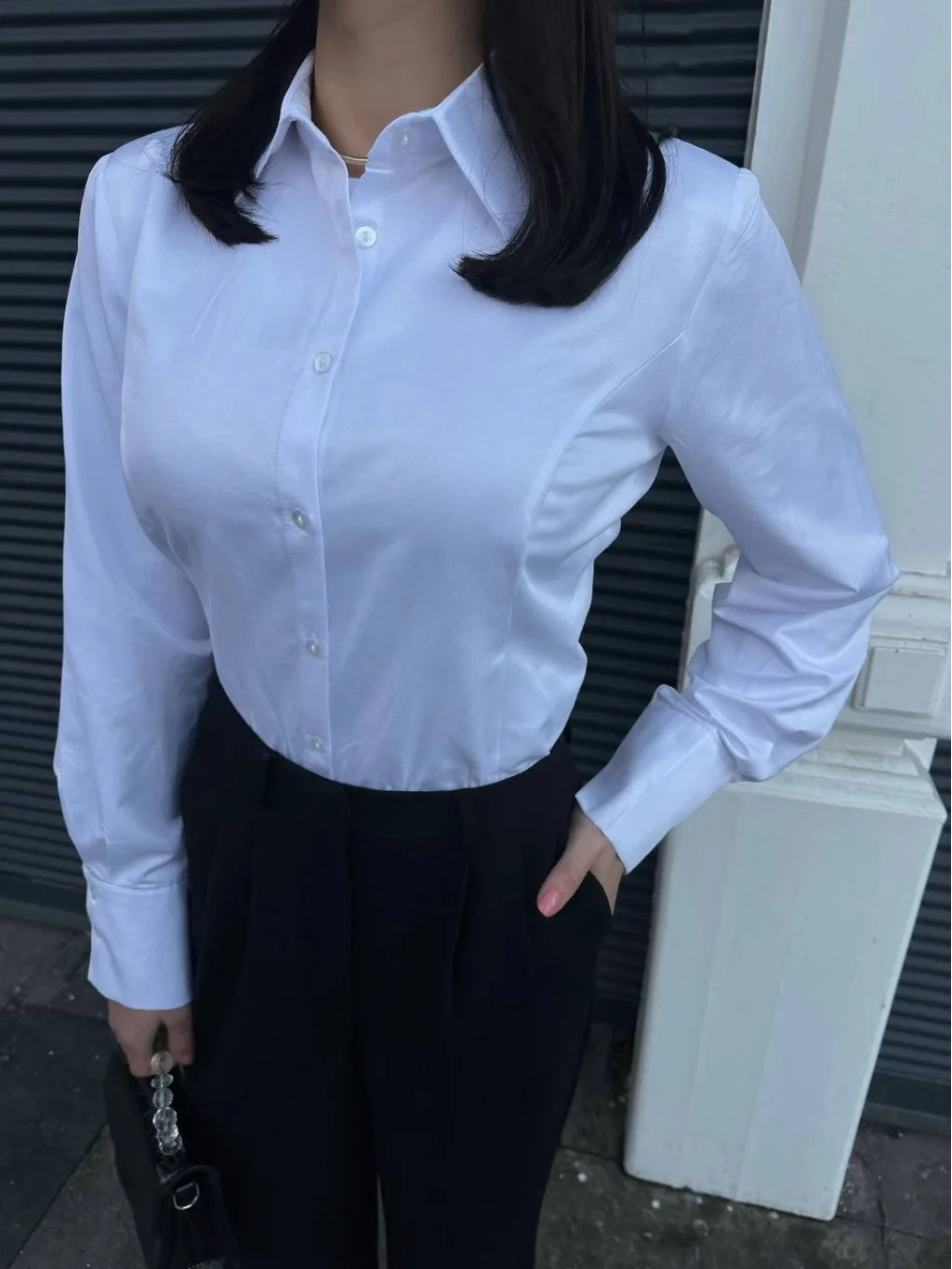 Dik Yaka Vatkalı Poplin Beyaz Gömlek
