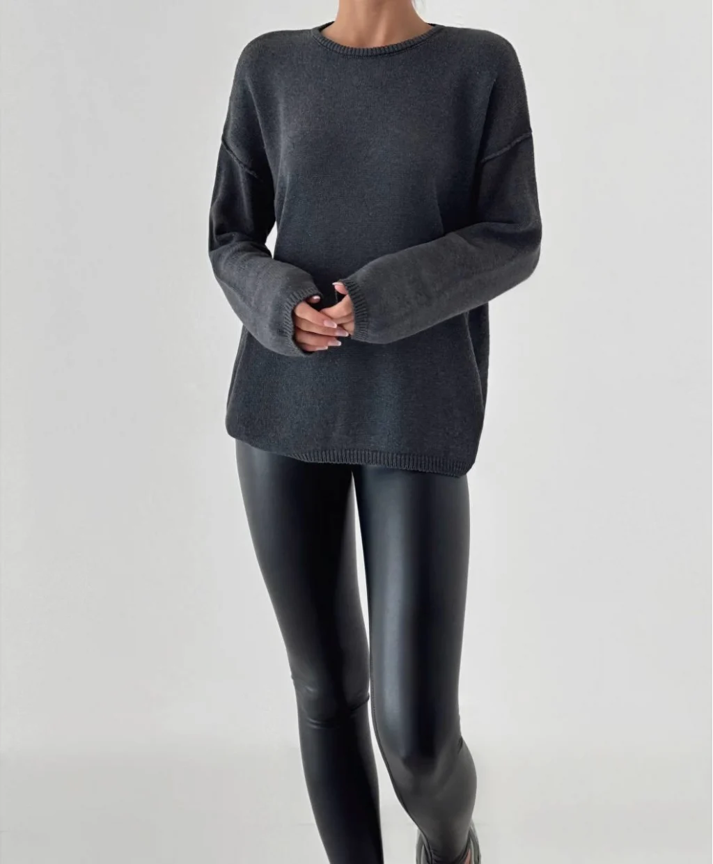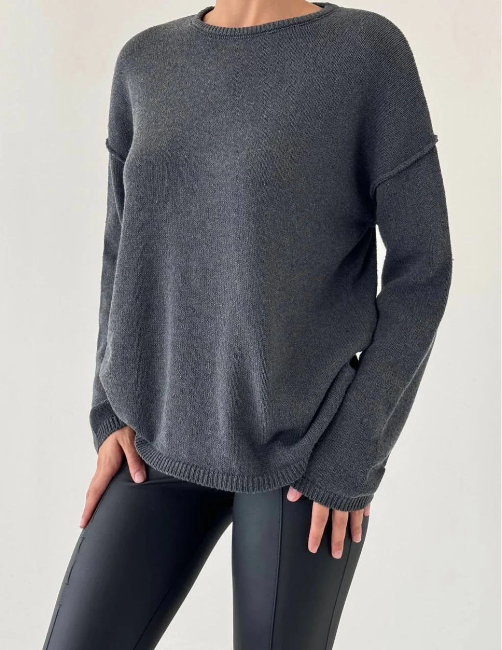Omuz Dikiş Detaylı Antrasit Triko Kazak