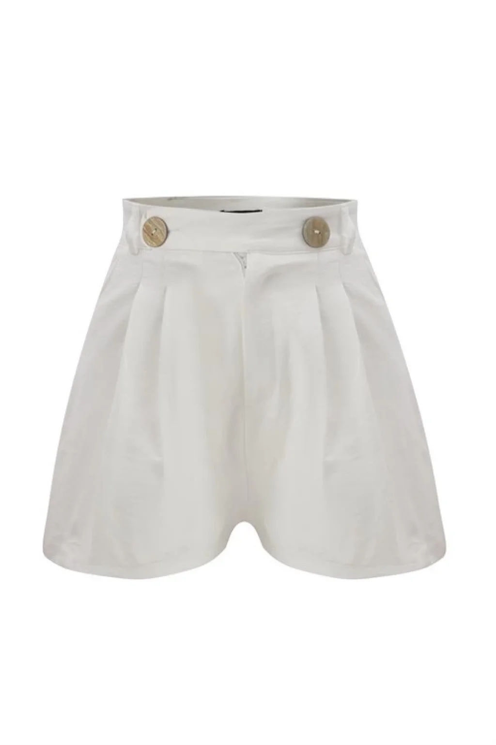 Düğme Detaylı Beyaz Şort