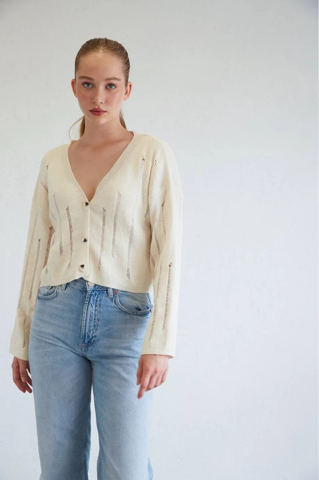 DÜĞMELİ TRİKO HAM EKRU HIRKA