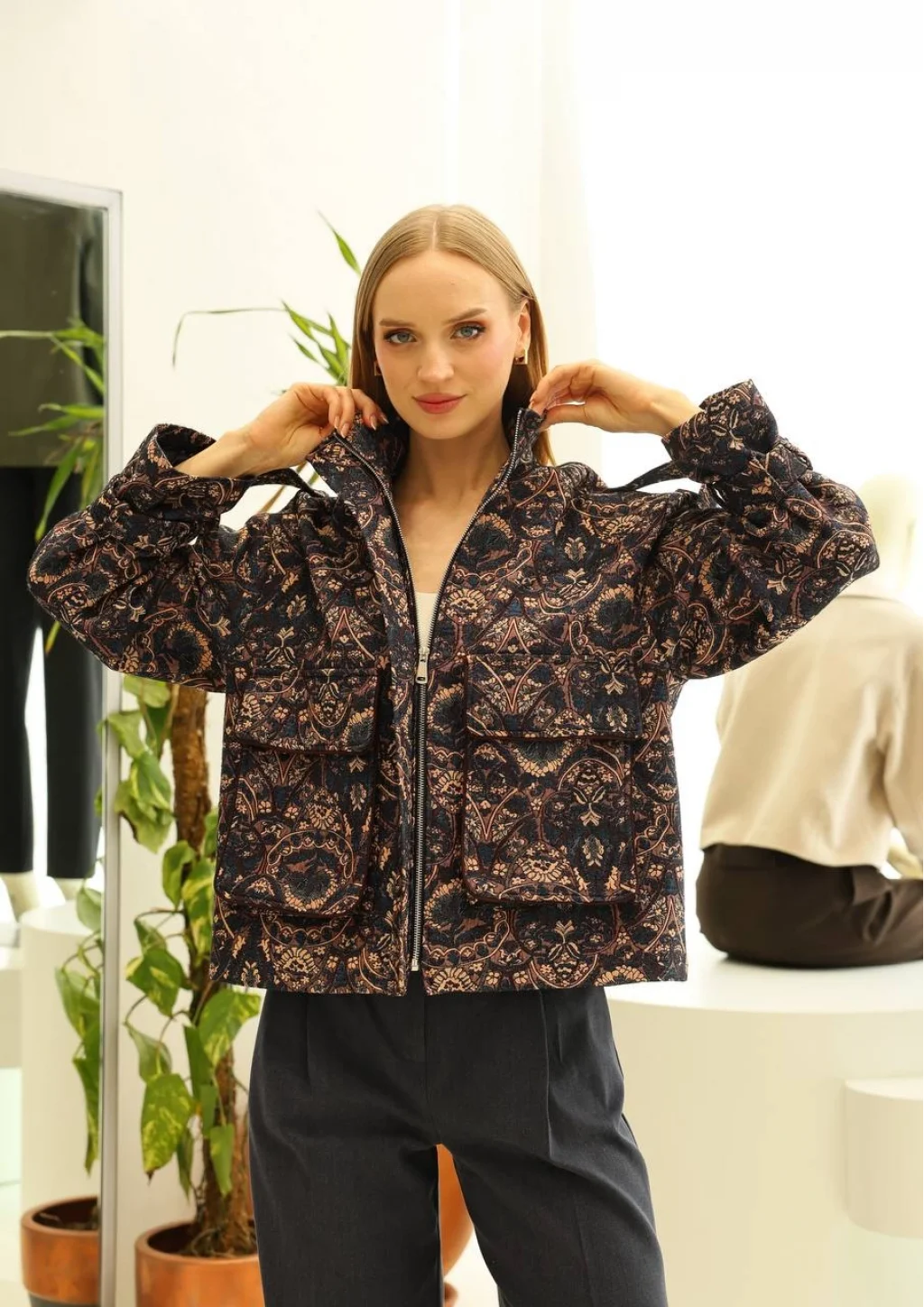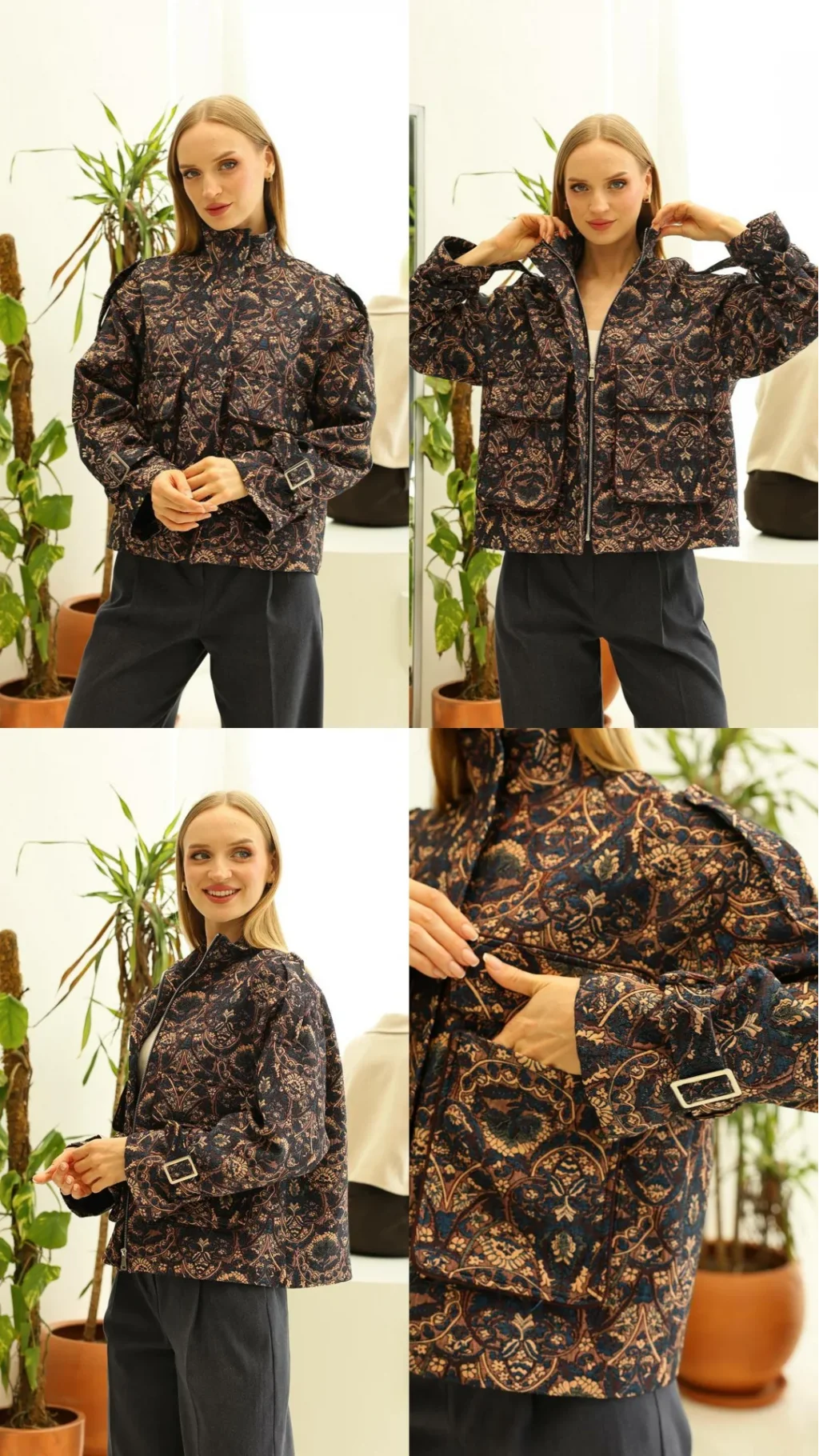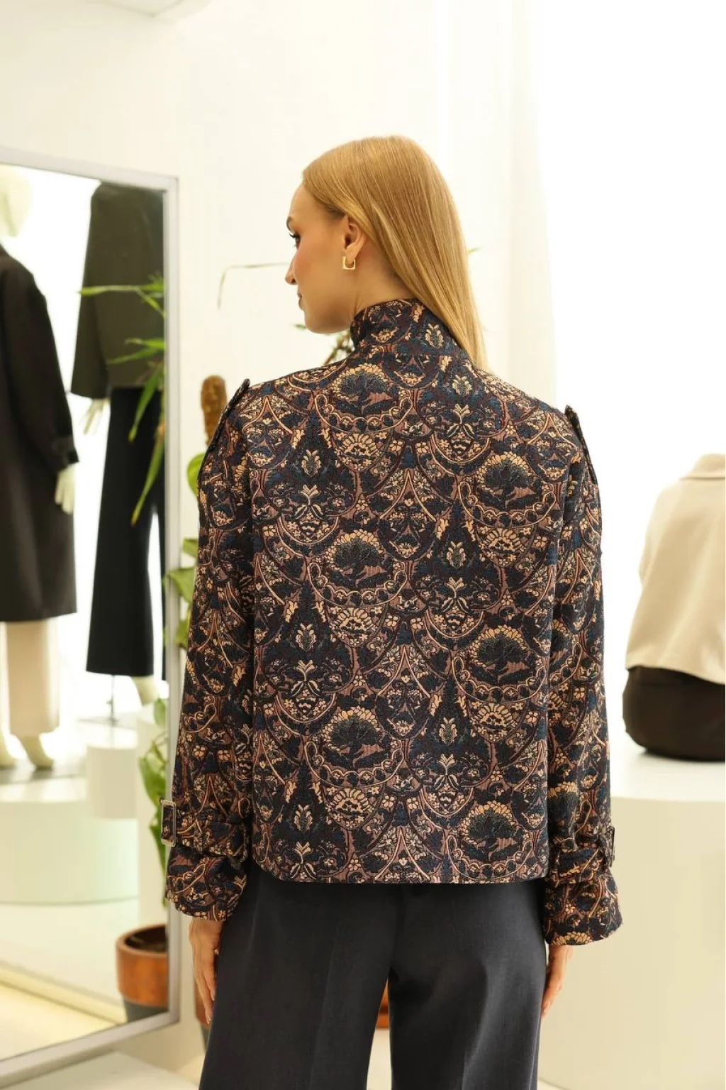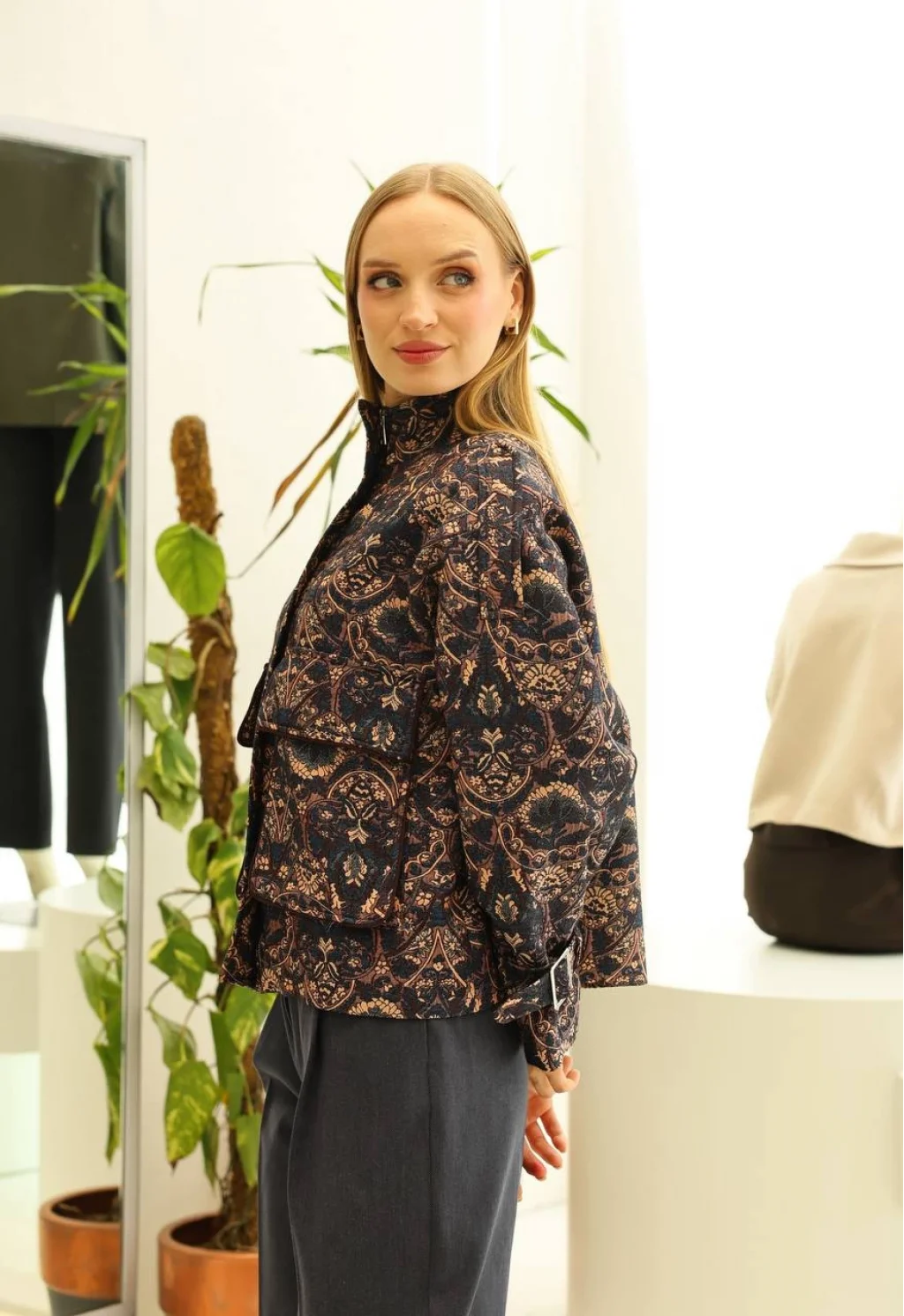 • MYRA Etnik Desen Kısa Ceket-Lacivert, şıklığınıza şıklık katacak!