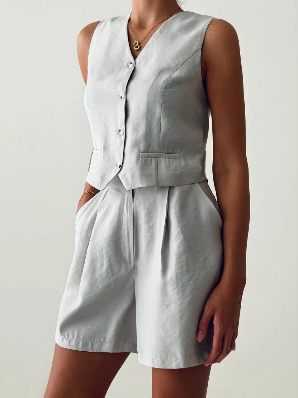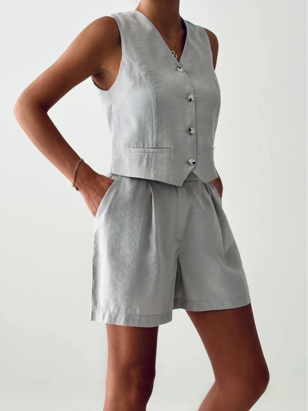 EXEN MODAL KUMAŞ ŞORT YELEK TAKIM GRİ