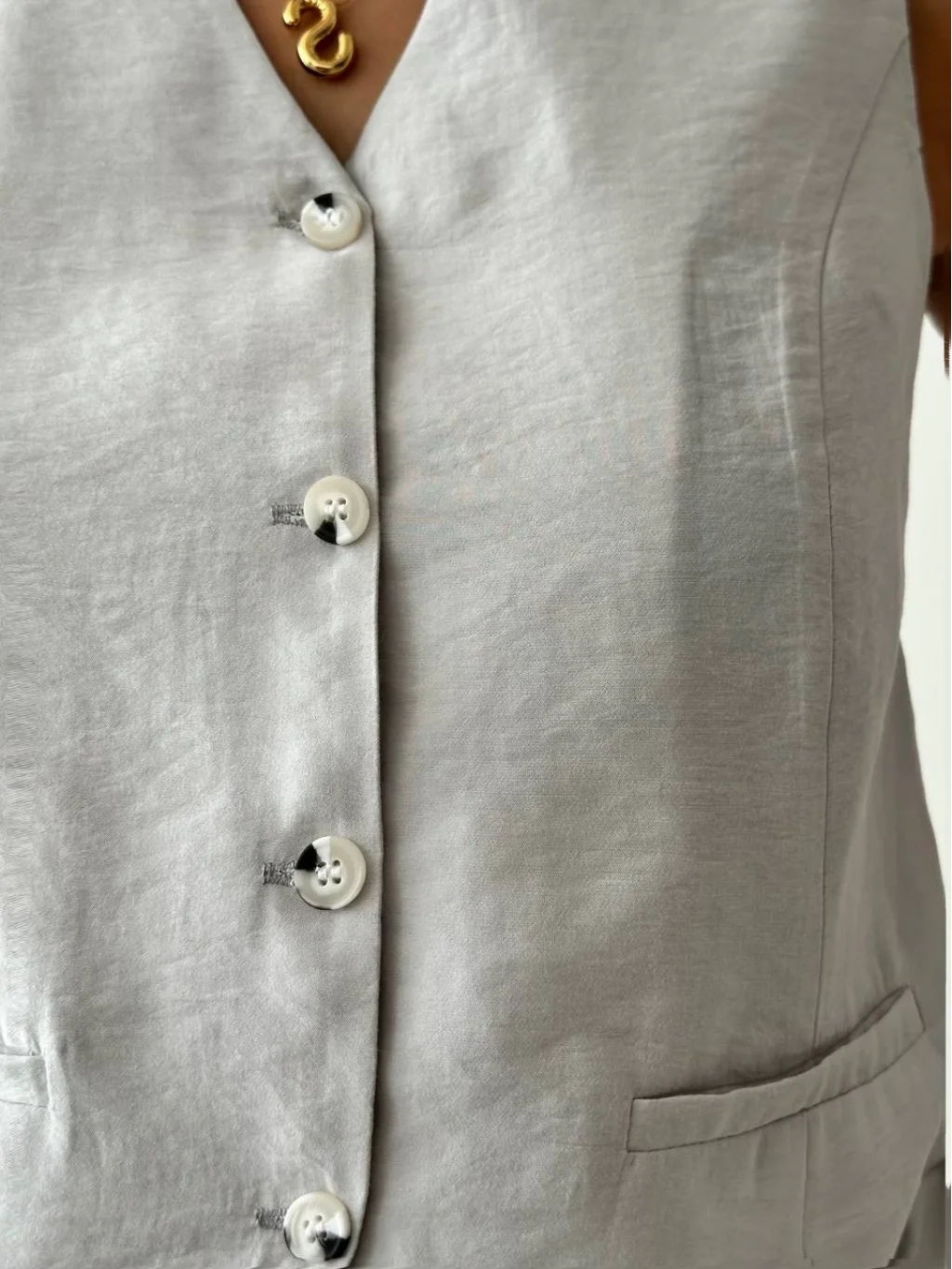 ÖN DÜĞME KAPAMALI SÜS CEPLİ ASTARSIZ YELEK