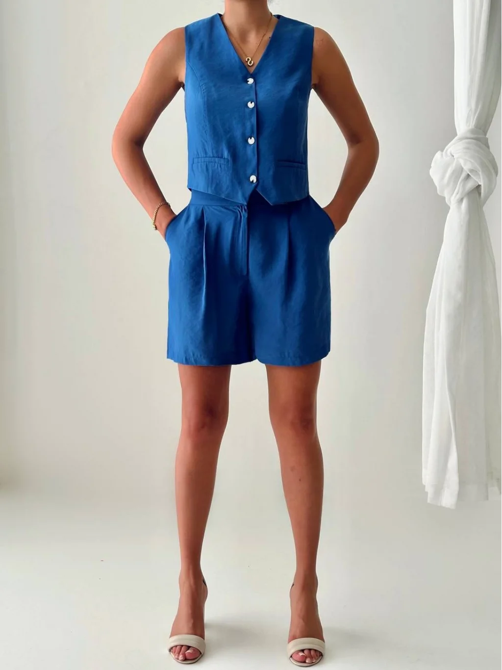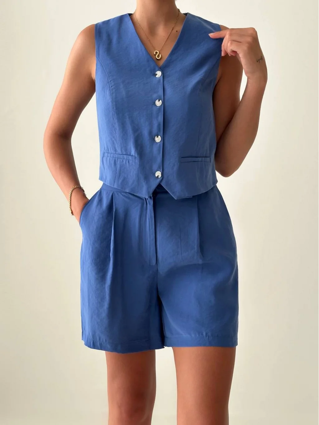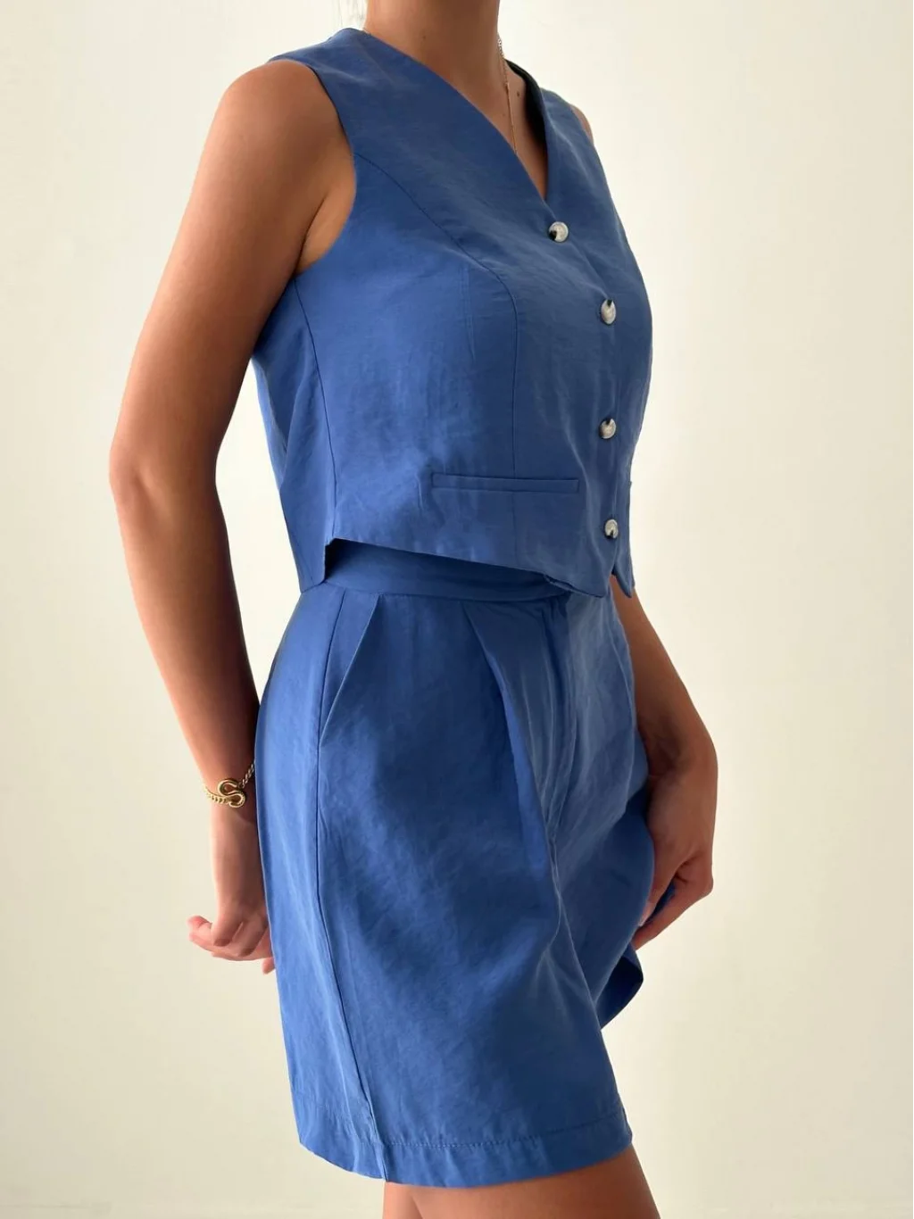 EXEN MODAL KUMAŞ ŞORT YELEK TAKIM İNDİGO